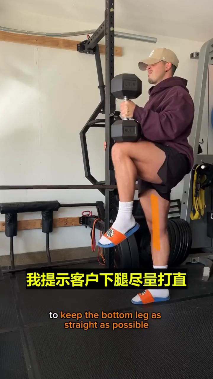 关于动作:下腿锁定伸髋,上腿顶峰收缩,且哑铃能离髋多远就多远,它离髋越近就越简单。我提示客户下腿尽量打直,屈曲股四锁定膝盖,收缩下腿的屁股到有点抽筋感,全程保持伸髋。在保持下腿打直的情况下,你能把腿抬多高,能用多大重量下腿屁股还不松掉。多数人没把两腿关系协调好,这就是为啥弓步蹲像屎,做保加利亚分腿蹲感觉像屎,冲刺缓慢,做有些动作腰酸。