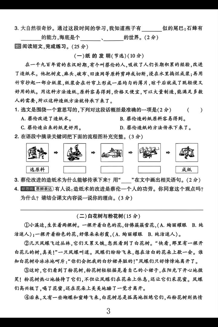 ·5.从白花树和粉花树的不同结局中,你懂得了什么道理?(2分)