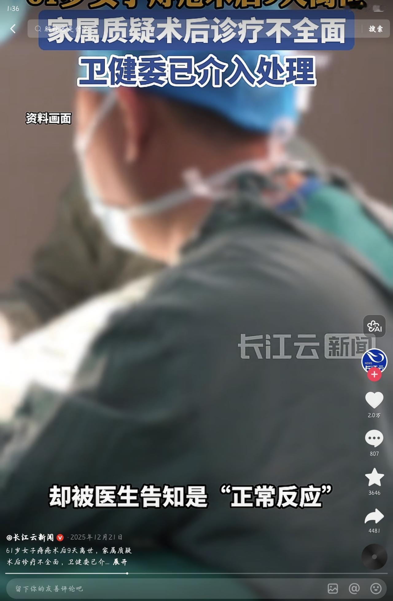 医院虽立即抢救,但最终没能挽回生命,宣告死亡。整个过程进展极快,从术后发烧、疼痛,到突然病危离世,间隔时间非常短,家属完全无法接受这一结果。