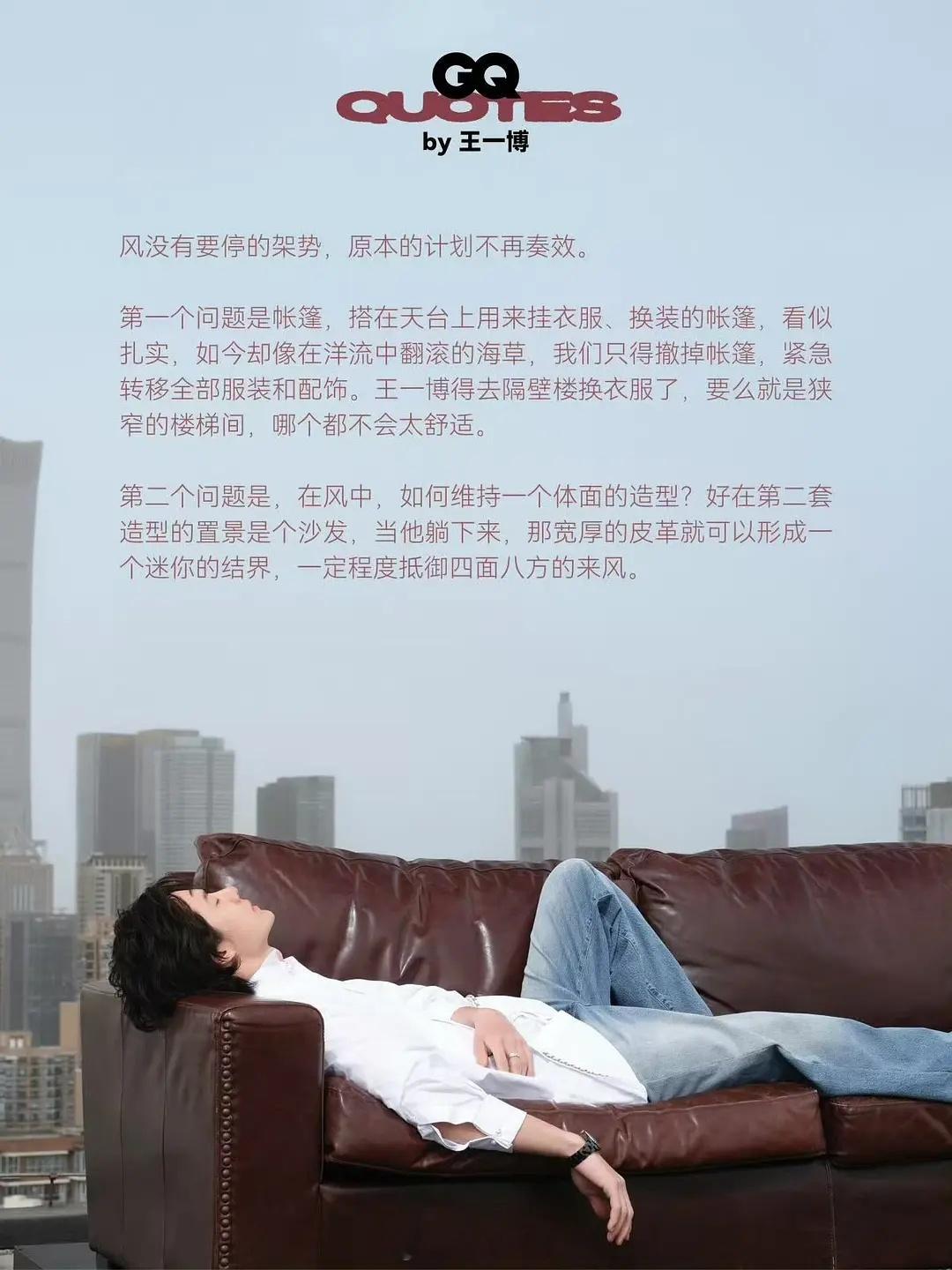 用户10xxx37 7 2026-04-16 09:56 看到说素颜。没拍完,突然起大风了,天台换衣服的帐篷也被吹的东倒西歪不能用了,发型师给整得头发也被天台大风吹的乱七八糟,计划被打乱,人就到隔壁楼换了件衣服,就那样顶着一张素脸,迎着狂风,顺势而为地在风中自由发挥,让摄影师随意抓拍,把其余的照片拍完了。一半柔软缱绻一半坚硬从容,在城市高空的极致场景里,将香奈儿独有的摩登矜贵,与他自身坚硬与柔软并存、锋利与沉静共生的多面魅力完美融合,既演绎了独树一帜的香家型男风范,也书写了一场关于突破、成长与奔赴的先锋叙事,王一博不愧为时尚界的神。