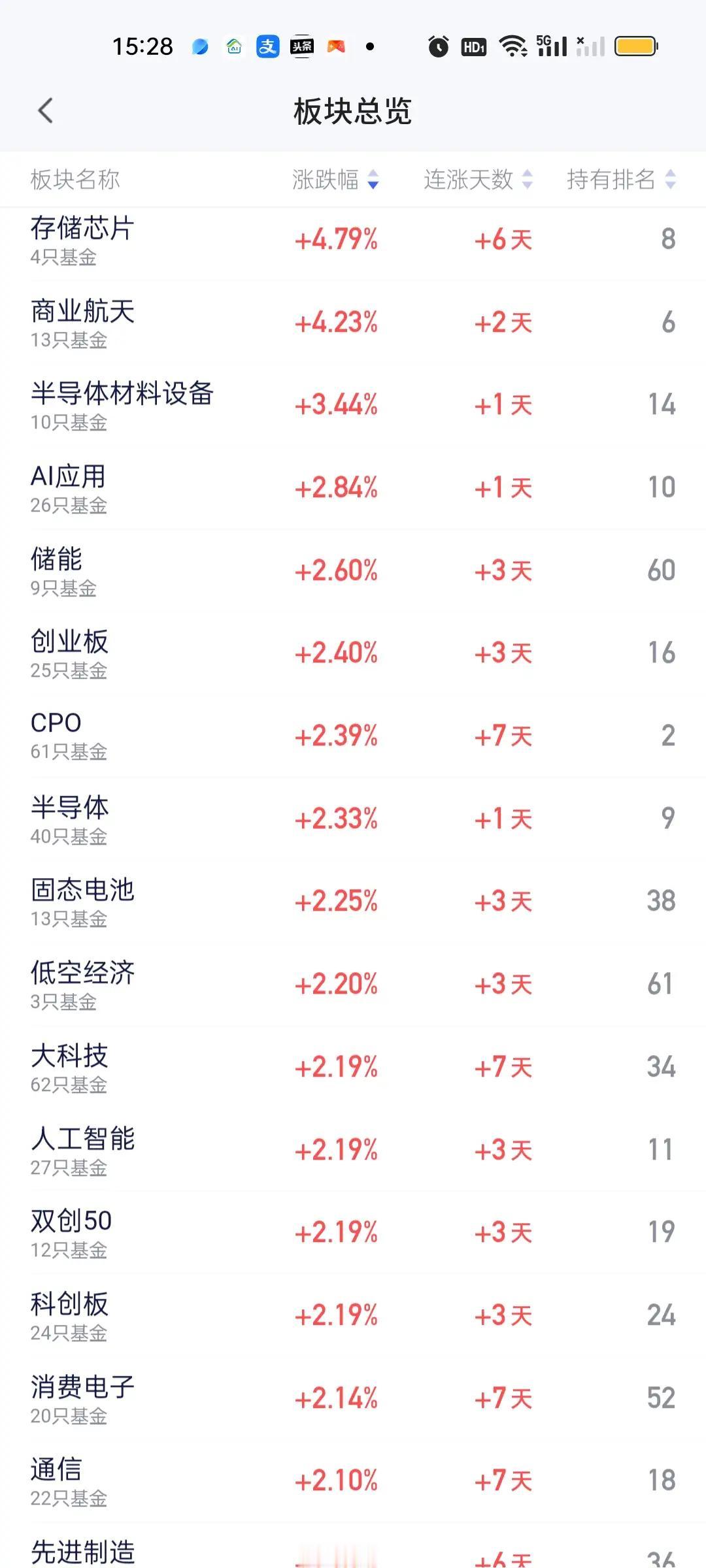 今天涨幅居前的是创新药,医药,海外医药,恒科,养老产业,标普,商业航天,医疗,恒指,黄金,银行,脑机接口等。