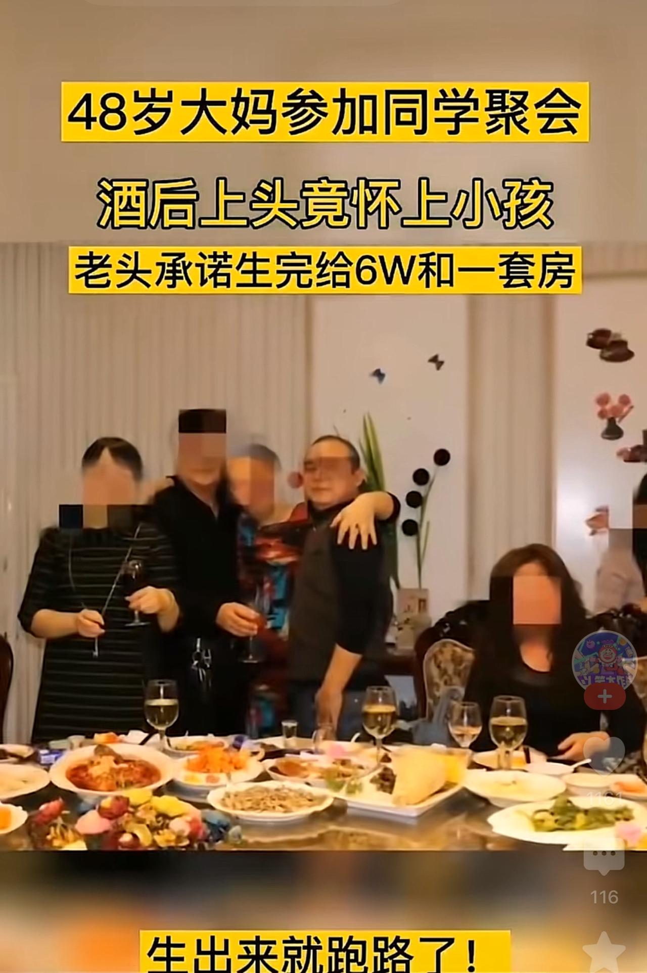 这是真的吗?48 岁大妈参加同学聚会,结果醉酒后怀上小孩。老头承诺生完给六万和一套房,结果生完跑路了,找不到人了。