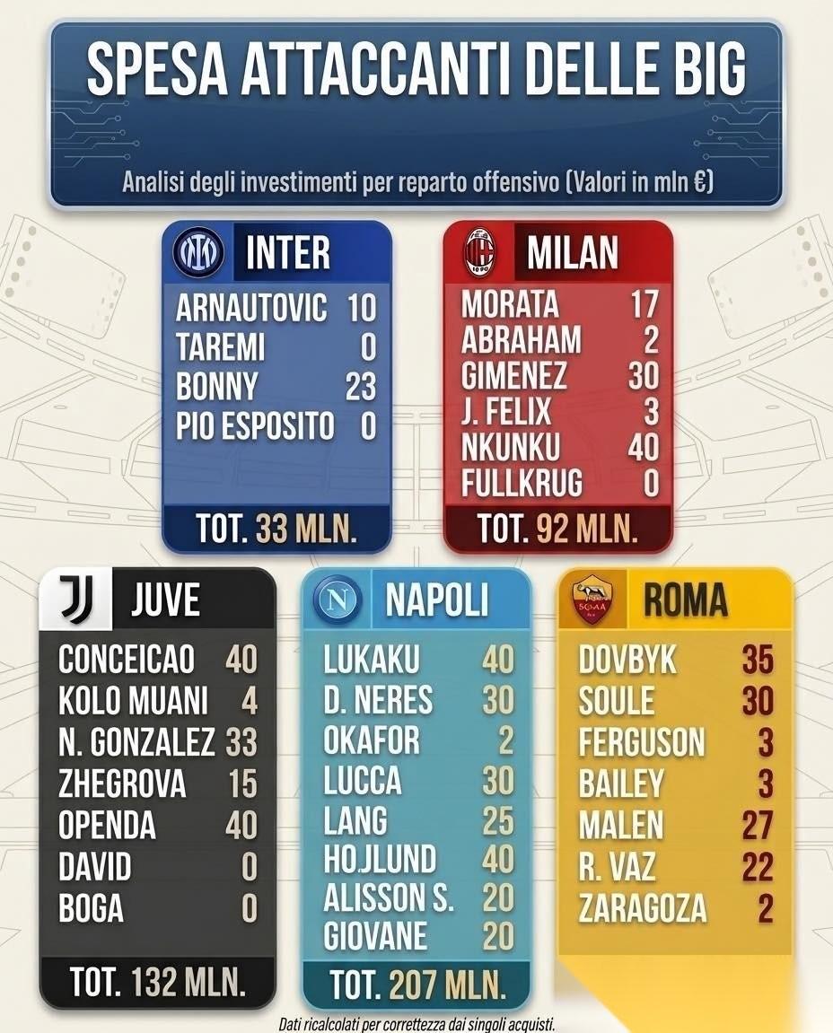 最夸张的要数那不勒斯,掏了两亿多给锋线大换血。这手笔放在全欧洲也算得上财大气粗。