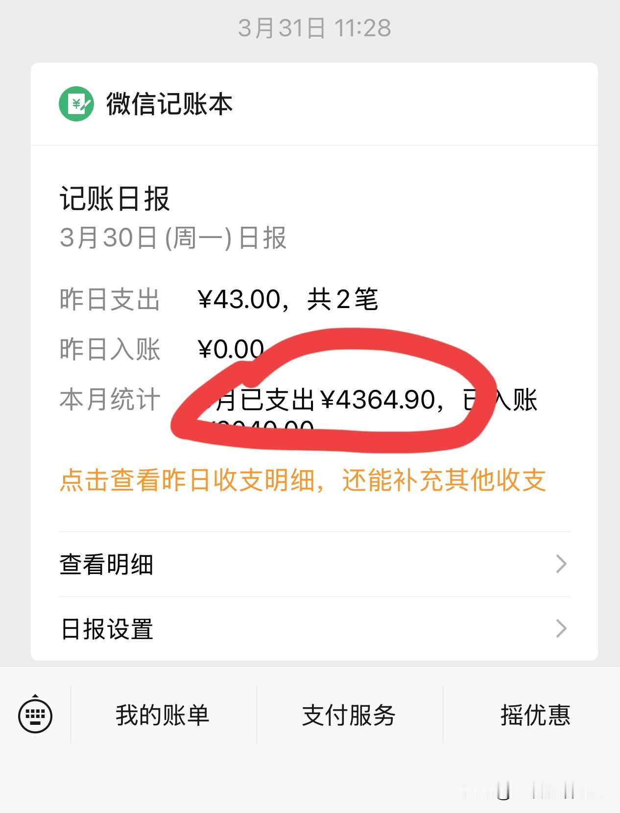 昨天一看微信只有三百多块钱了,赶紧又充了5000块。看了一下账单,杂七杂八的在海