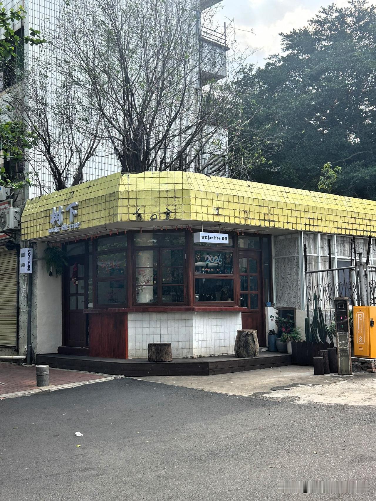 力神咖啡多年前名气还是很大的,跟我年龄差不多的都应该知道这个牌子。看着废弃的厂房以为咖啡厂倒闭了,可是门外却有个力神咖啡直销商场。一楼仓库招租,咖啡厂办公楼(宿舍楼)开了一家老爸茶,大门口开了一家树下咖啡,这个位置有点像传达室[捂脸]