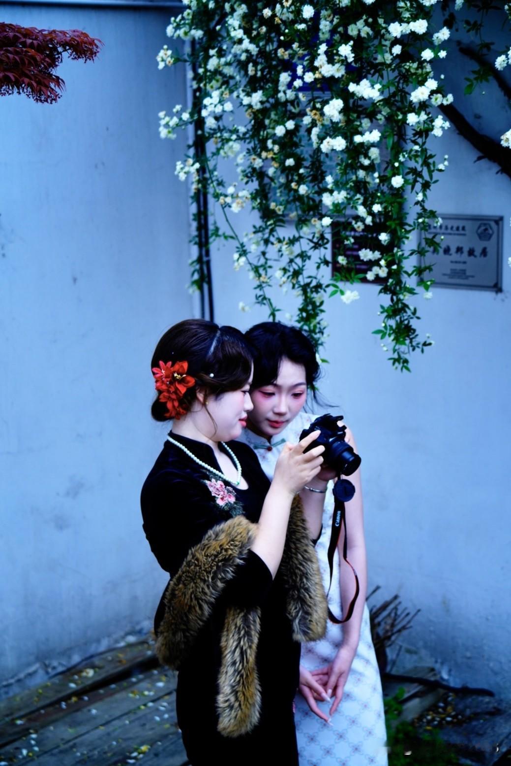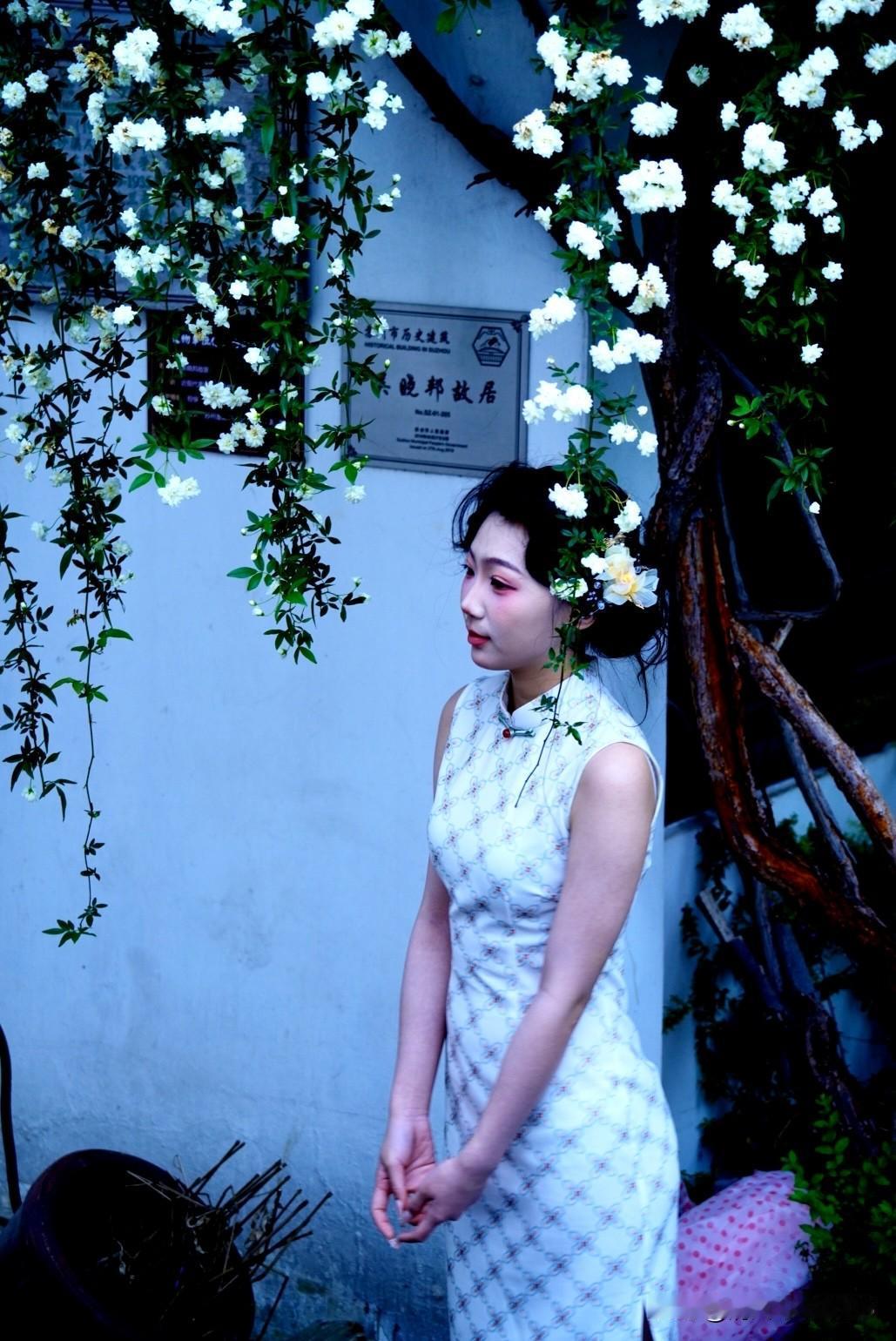 转角撞见木香花瀑,旗袍身影在花影里定格,把江南的温柔,都揉进这半日闲光里。