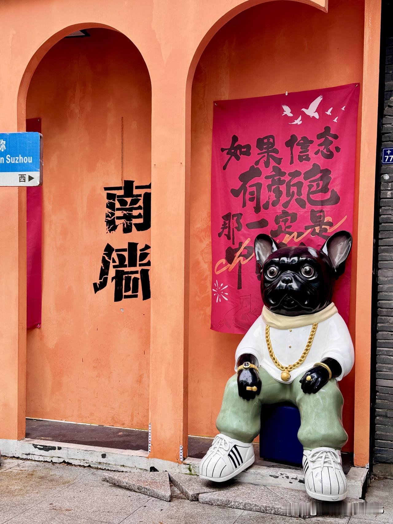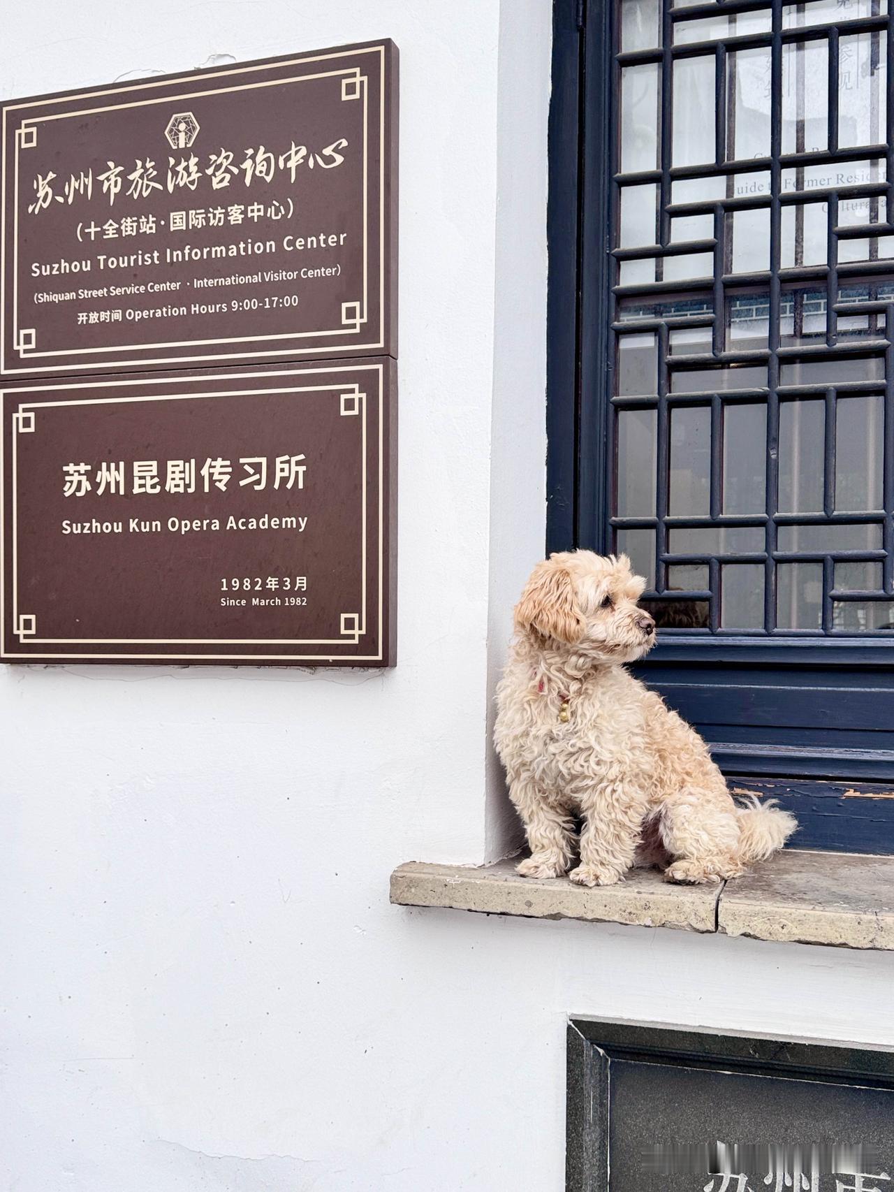 走到巷头,是苏州昆剧传习所。青砖灰瓦间,昆曲的余韵在空气里缓缓流淌。窗台上那只看门的小狗,正机警地观察着往来的行人,对不合心意的动静,便不客气的出声。鲜活的模样,让满是文脉的地方多了几分真切的生活气。