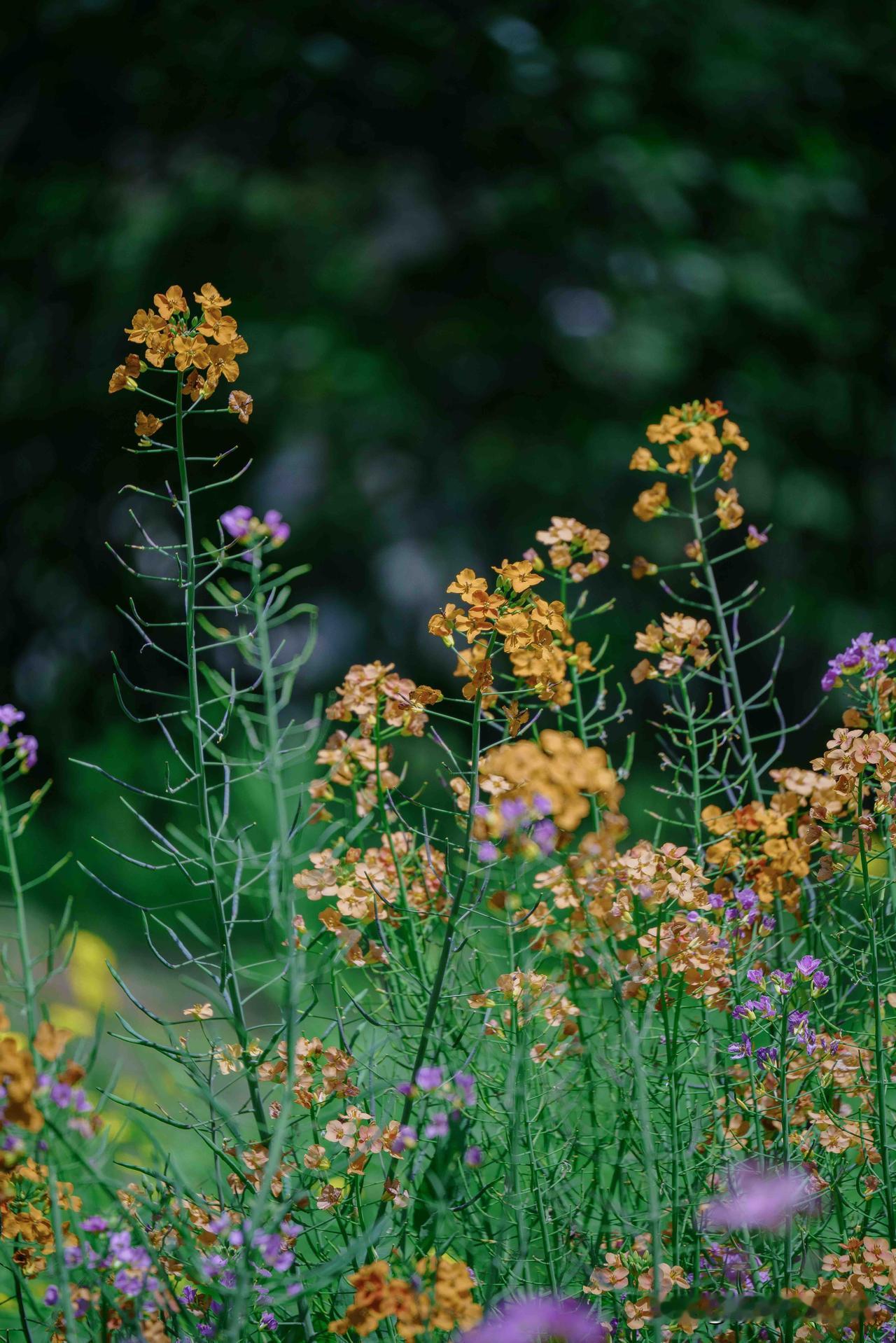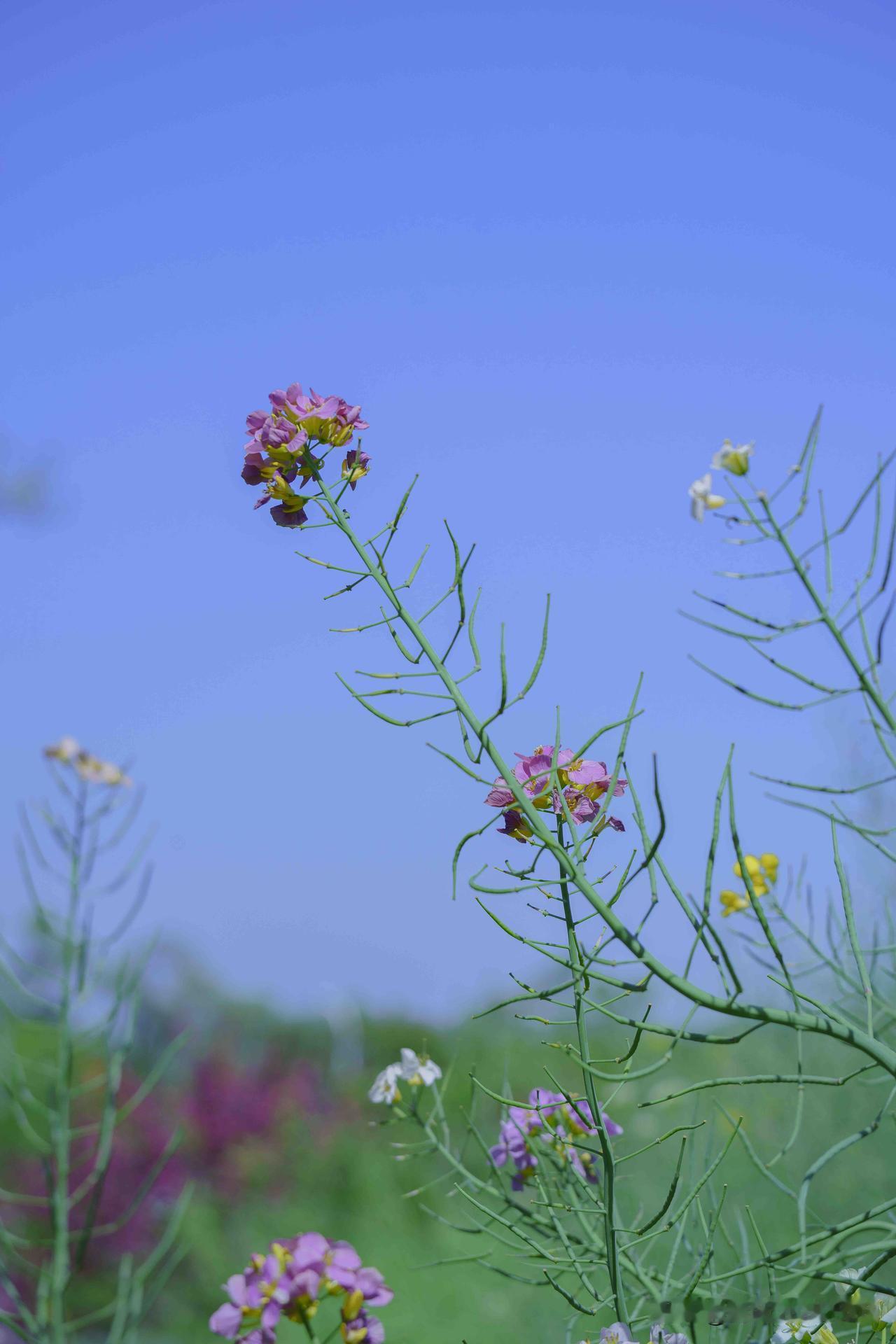专程奔赴白马公园,只为赴一场与彩色油菜花的春日之约。虽来至花期尾声,不见最初铺天盖地的绚烂盛放,花株已日渐拔高,渐渐结出菜籽,少了几分浓烈耀眼,却仍在枝头执着绽放,零星花色点缀其间,自有一番温柔的暮春之美。