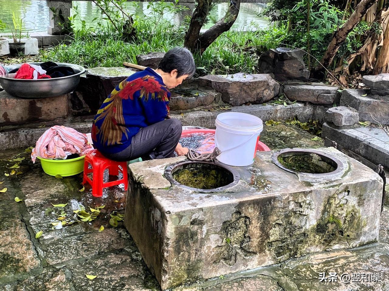 今天下午,走过姑苏羊王庙双井旁,见到一位阿姨正在用井水洗着好几盆衣服、被单,勾起