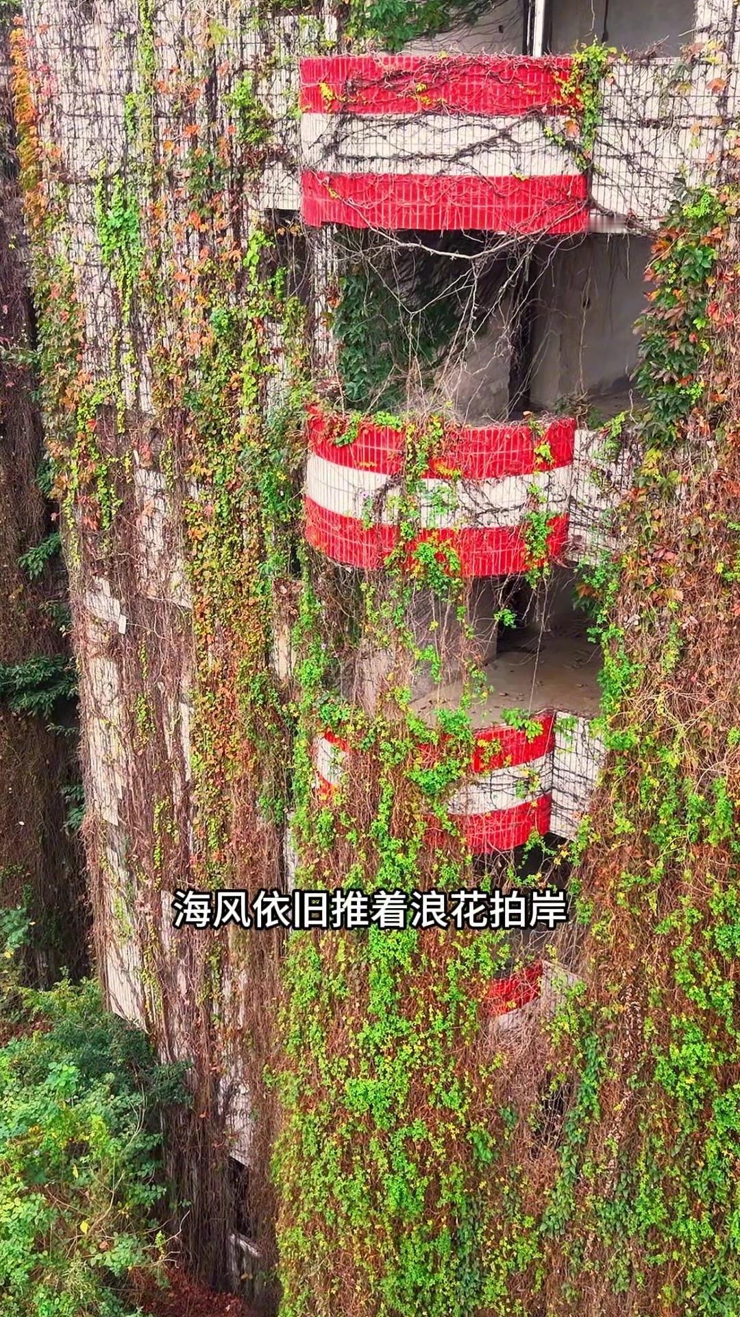 风穿过破损的窗户时会发出呜咽,却让满墙爬山虎抖得更欢。晾在废弃阳台上的旧泳衣被海风卷成圆舞曲,楼下生锈的秋千在落叶里轻轻摇晃,好像在说它见过多少人的童年与盛夏。