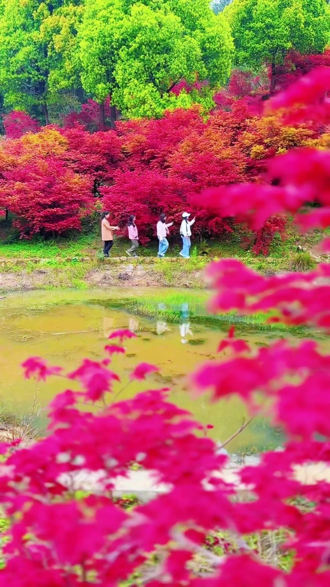 周末误入北碚黄金谷五彩森林,仿佛闯进了打翻调色盘的童话世界!漫山遍野的树木像被施了魔法,红、黄、绿交织成油画里的秘境,山顶俯瞰简直美哭。