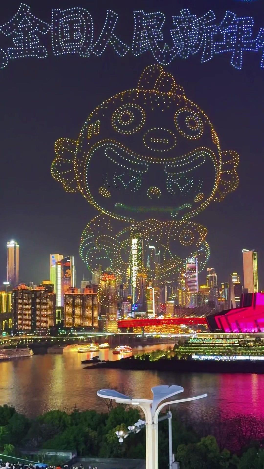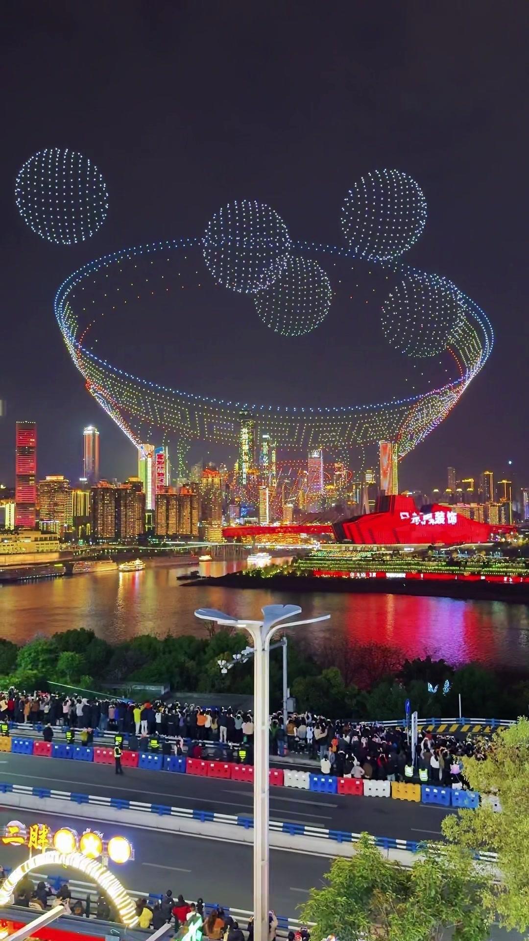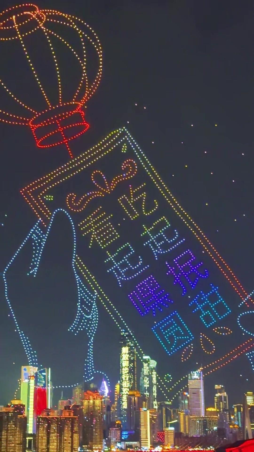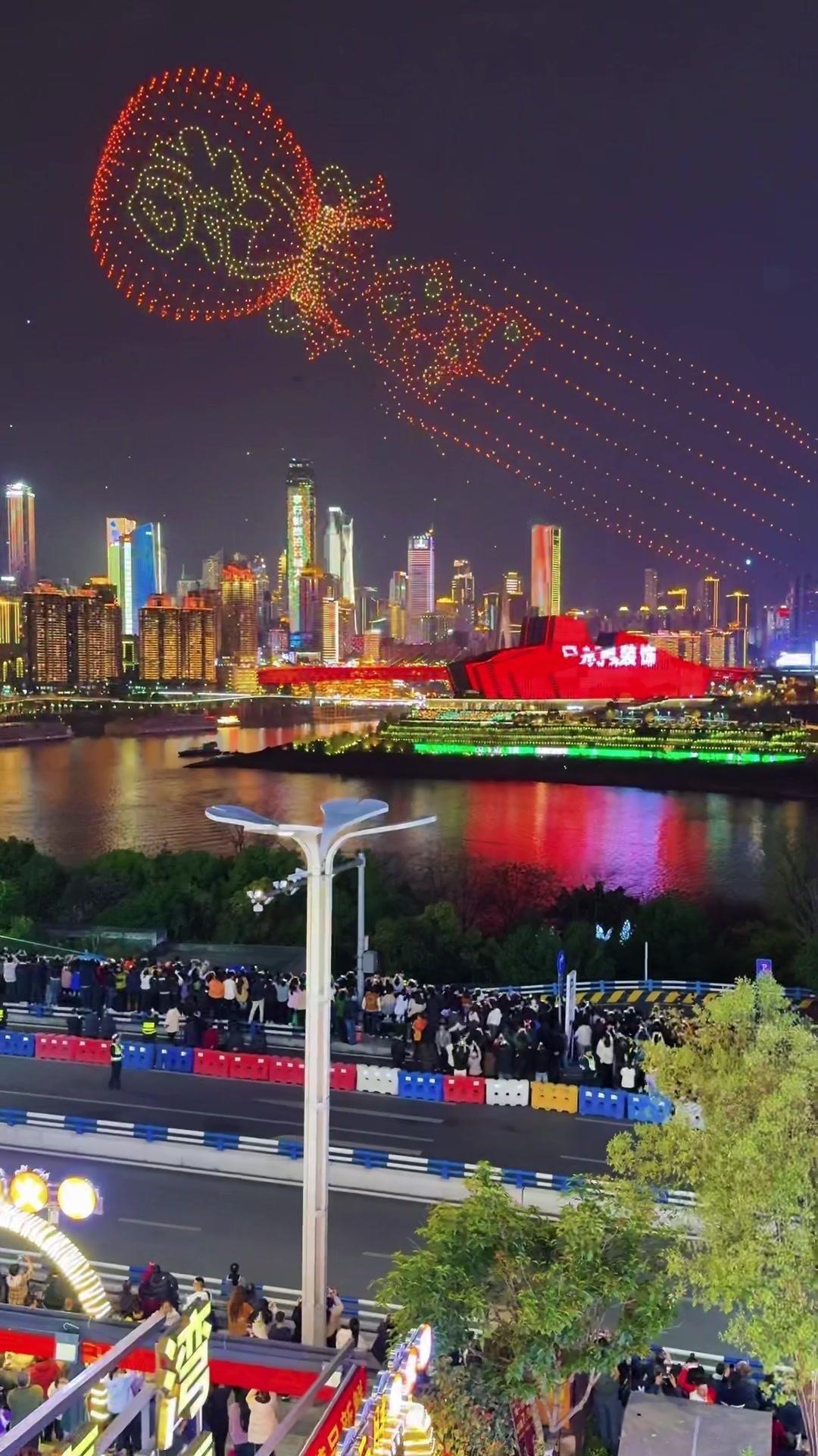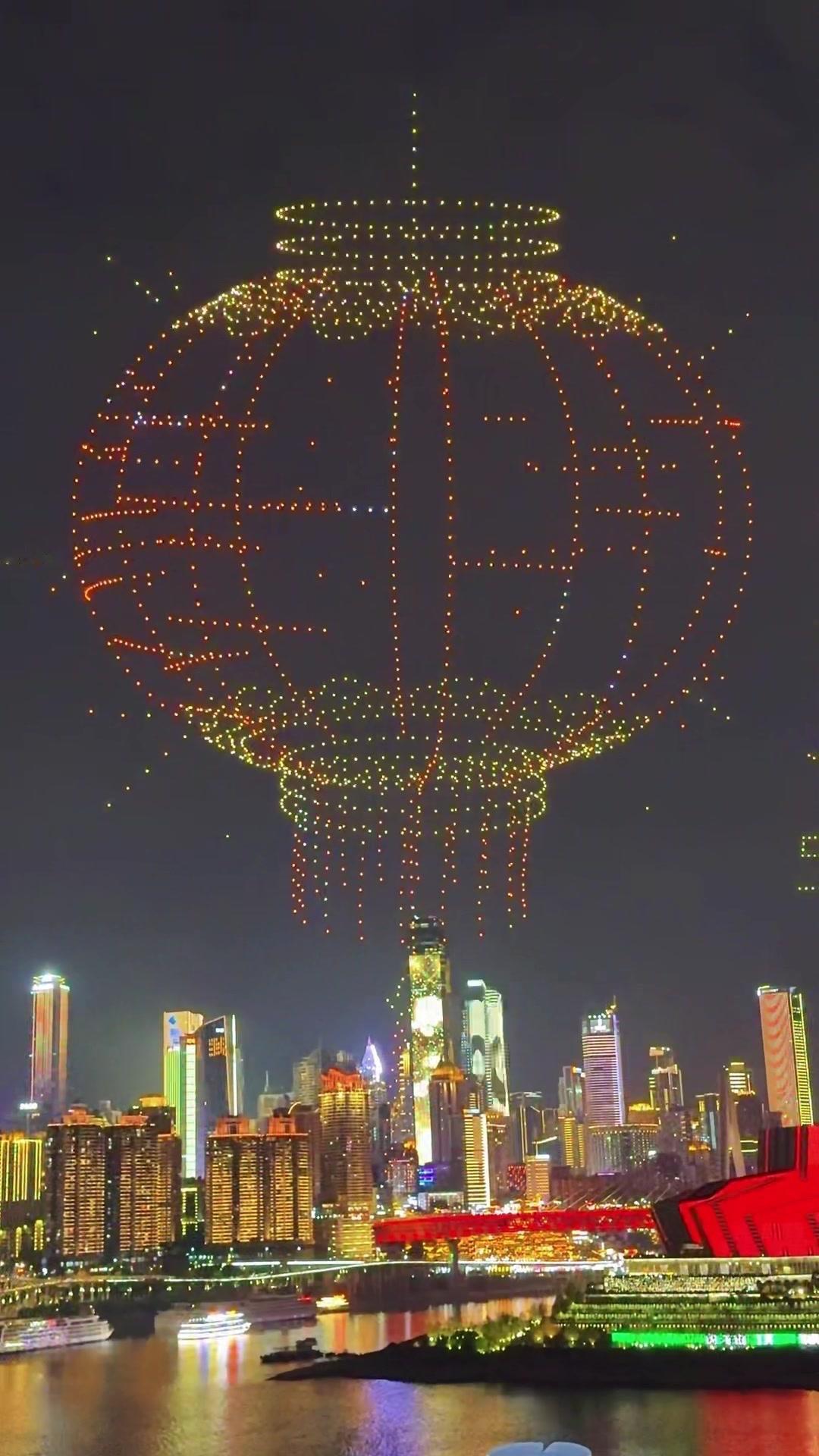 🎆重庆元宵无人机秀太震撼了!金红灯笼照亮夜空,福袋雨洒下好运,万架无人机组成的星光海洋,随手一拍都是大片!