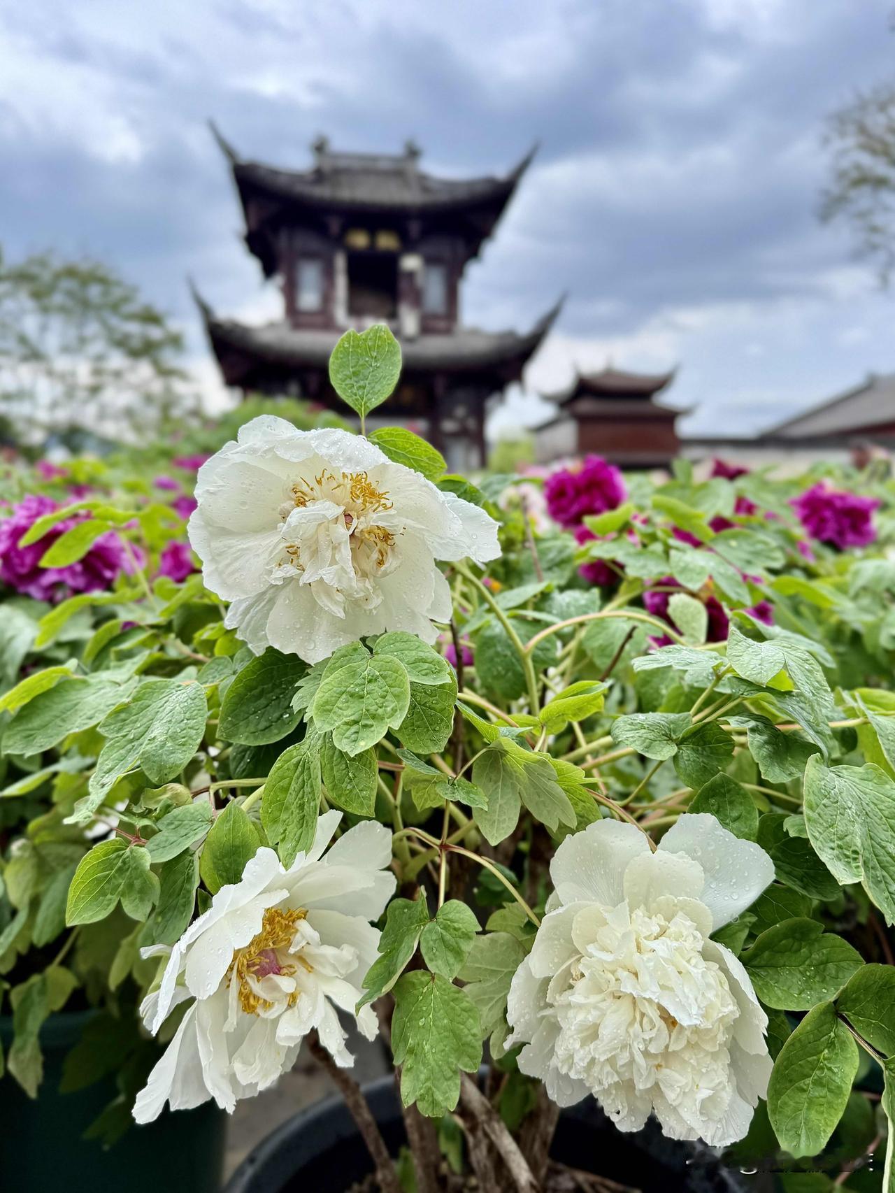 重庆华岩寺的牡丹花盛开了,4月3号正值盛花期。位置是摆放在:巴山灵境里的鼓楼前的坝子上,红、粉、白三色牡丹围成硕大的花阵,国色天香,娇艳欲滴。虽然午后的太阳光有点炽热,蓝天白云下花朵略显晒蔫,却依旧难掩其争奇斗艳的风姿。正好2026年春假与清明假期也来了,是赏国色牡丹的最好时期,快去看看吧,花期不长,抓紧去拍照欣赏吧!