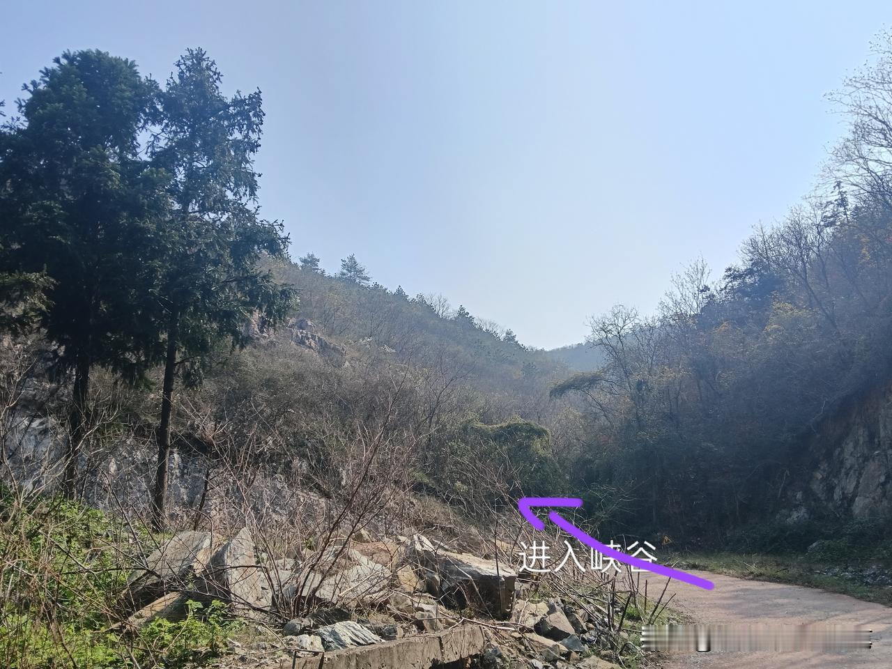 停好车,到谷口,沿小径步入。