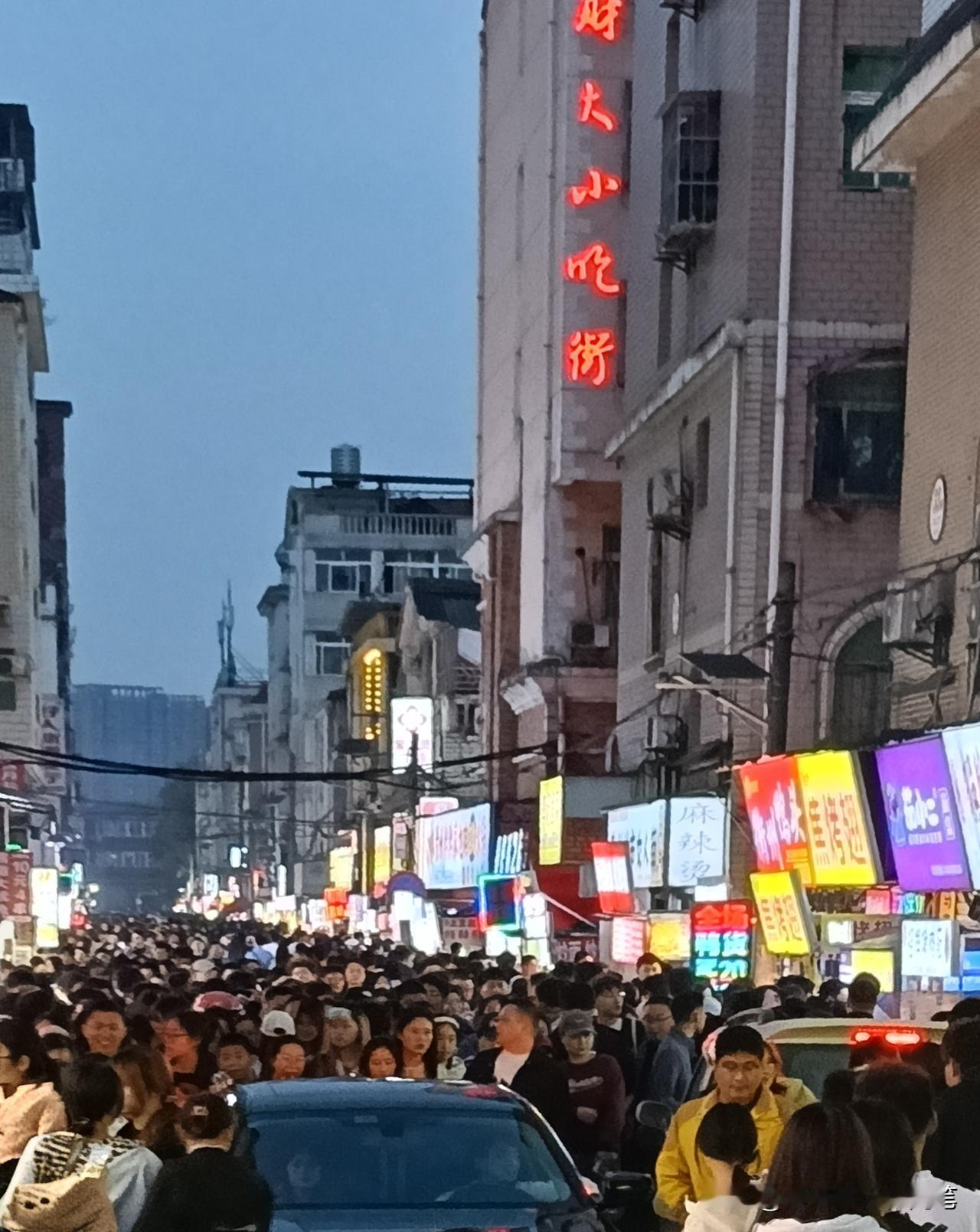 薄暮时分,行至武汉,信步往中南财经政法大学政院小区夜市去。