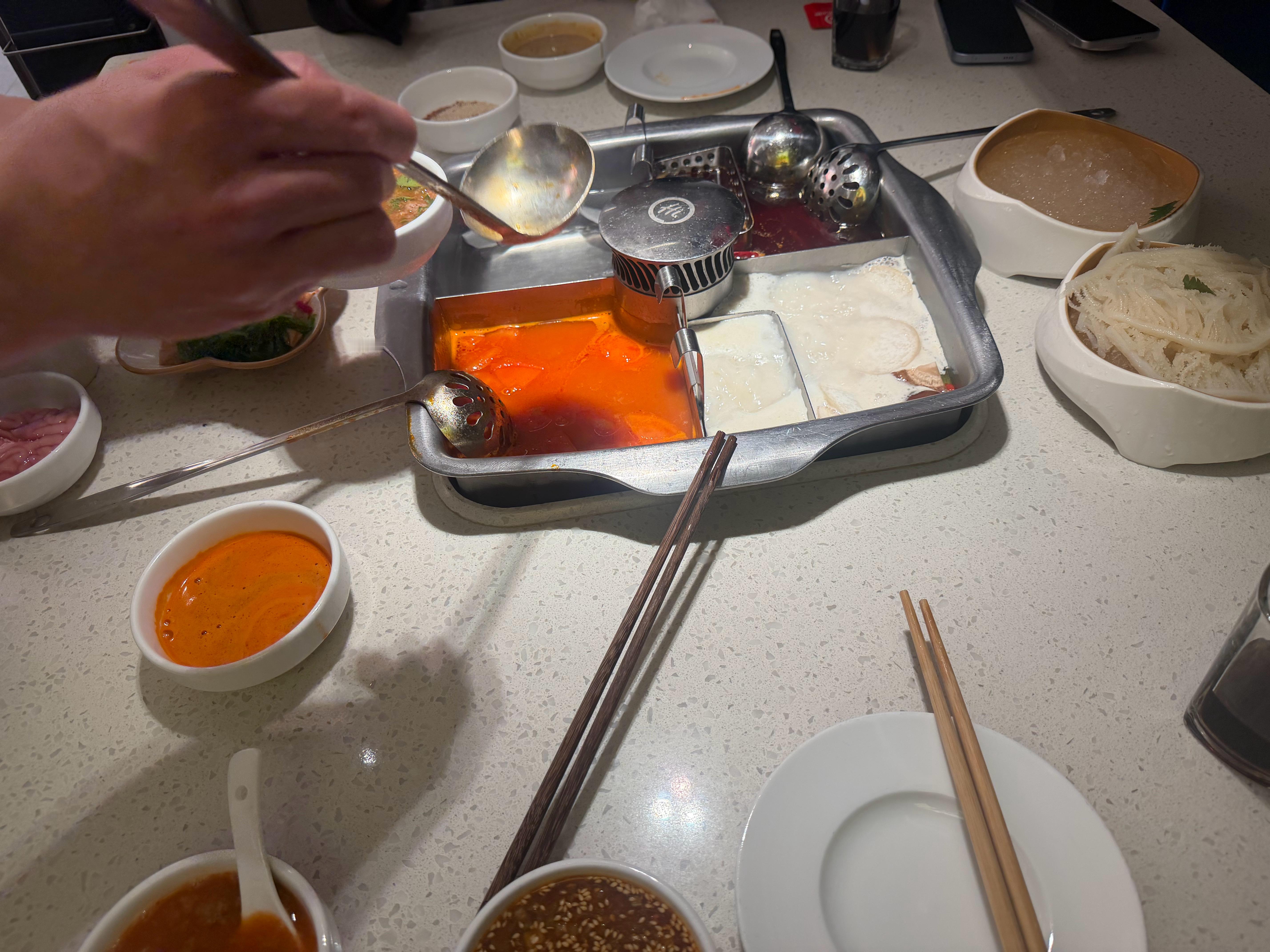 1️⃣海底捞工作日晚上人好少,但还是一如既往地好吃!意外去了家有dj打碟的,但我们还是选了“安静区”