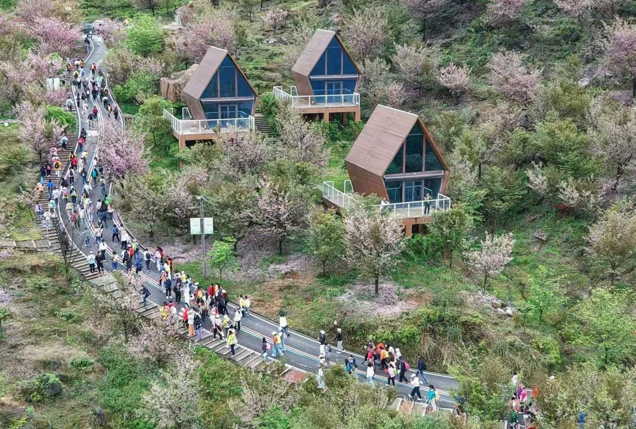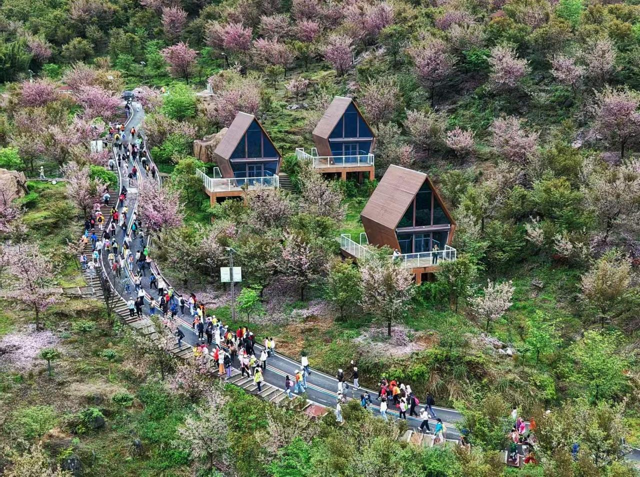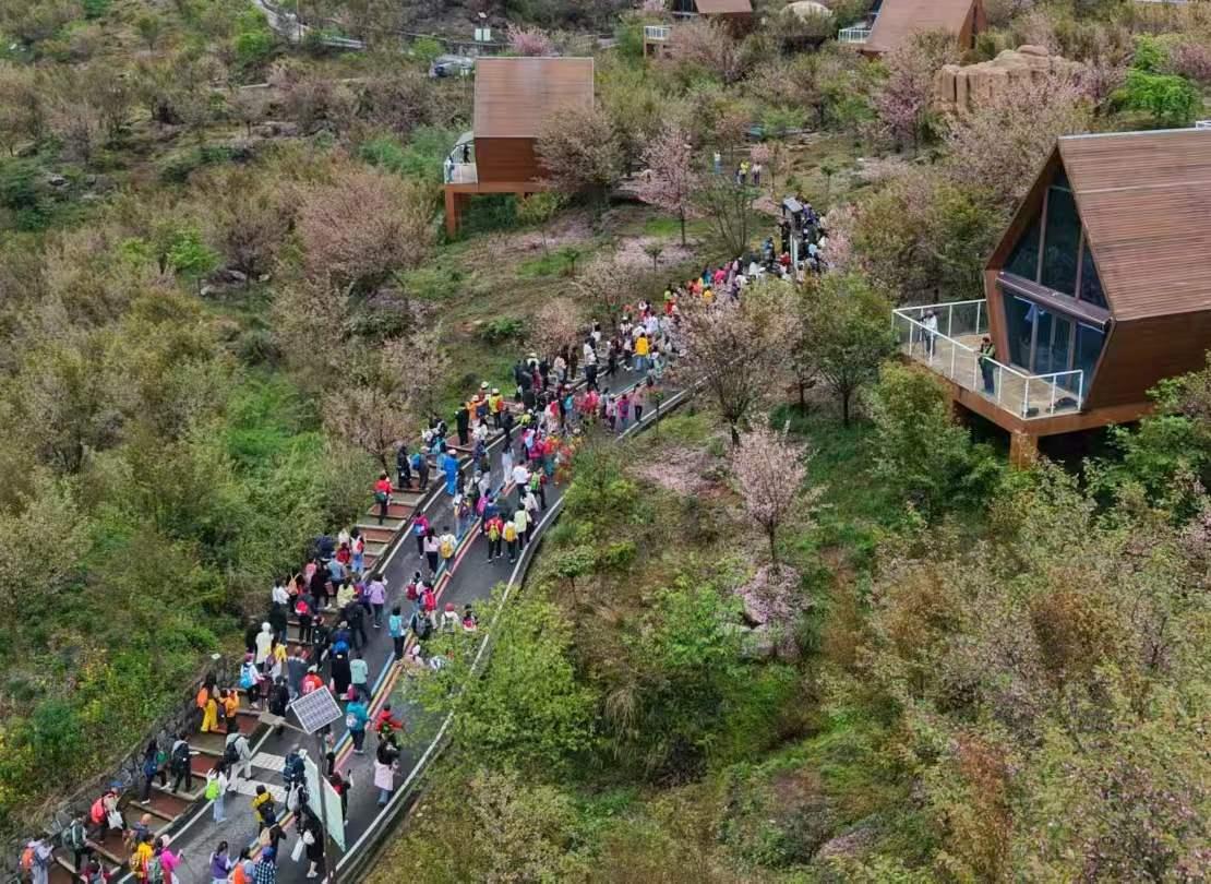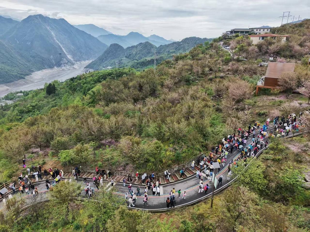 汶川赏花音乐季徒步樱花里活动现场。 航拍:4月11日上午。 图文原创:李豫龙 春