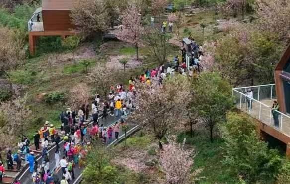 汶川赏花音乐季徒步樱花里活动现场。