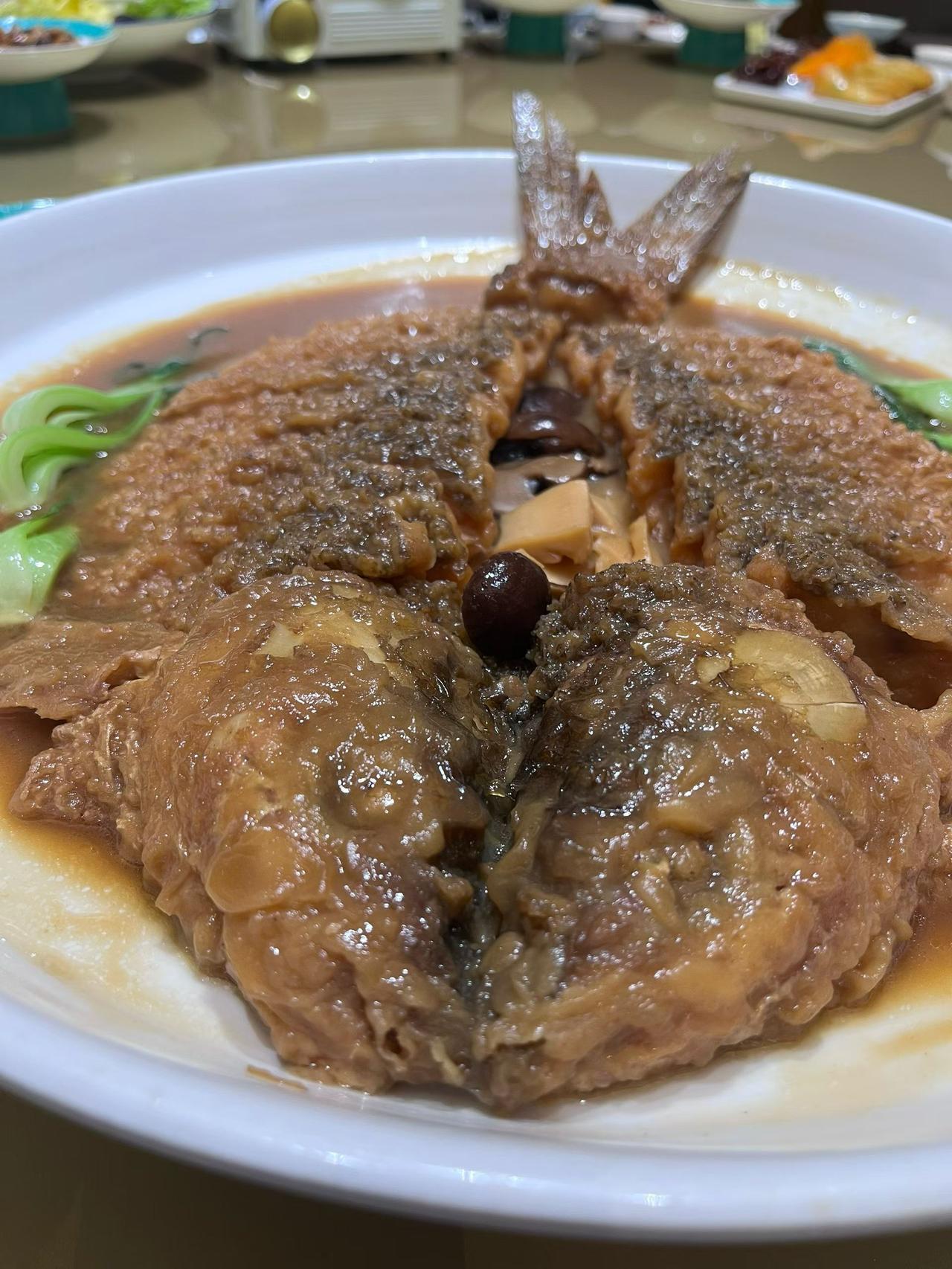 开封第一顿正餐必须安排在第一楼,第一楼孙总经理(图6)全程陪同。第一楼创始于1924年,百年企业,从未中断,以灌汤包闻名天下。孙总介绍,其实北宋时期,开封(汴京)十分开放富庶,美食繁多,后宋朝迁都临安(杭州),将美食文化带入江南,西湖醋鱼、宋嫂鱼羹、灌汤包等等美食均源自开封。豫菜的特点就是不咸不淡、味型平衡、一个字:“中"。开封至今也是一座文化名城,孙总也是一个文化人,不仅餐馆开得好,还是一名书法家,主攻宋徽宗的瘦金体(图5)。以前我对豫菜知之甚少,今日一品,大开眼界。所以说,世界处处有美食,不可做井底之蛙。