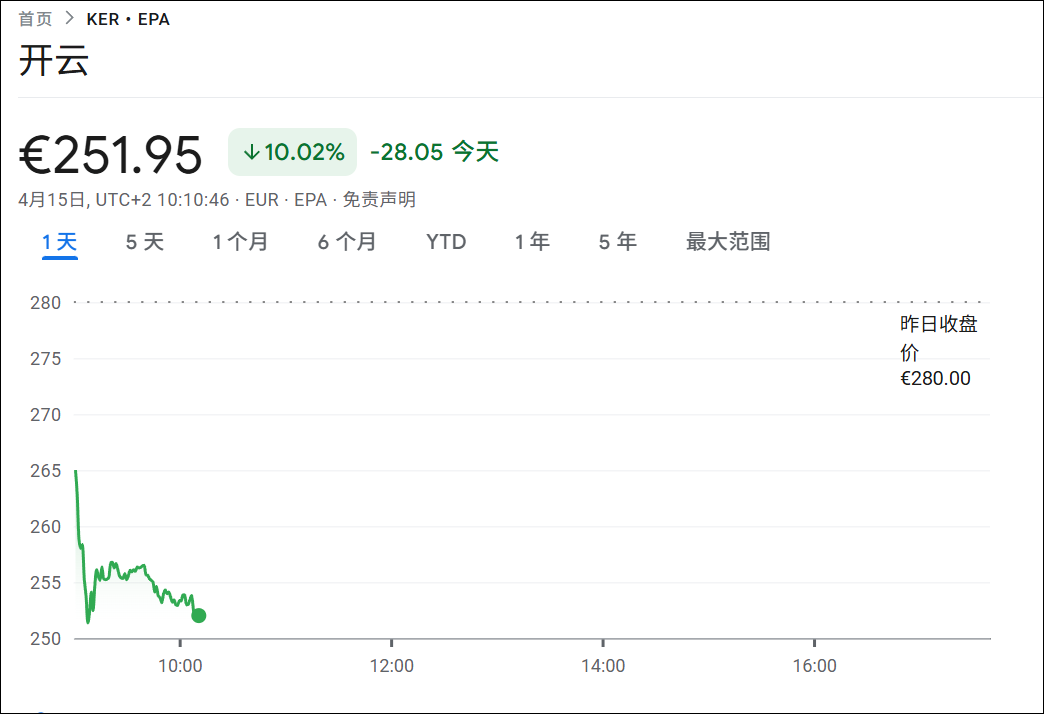 奢侈品爱马仕,还有古驰(Gucci)的母公司开云集团,股价全崩了。4月15日下午,欧洲股市开盘,奢侈品股大幅下挫。由于中东冲突冲击奢侈品消费,开云集团和爱马仕公布的第一季度业绩令投资者失望。