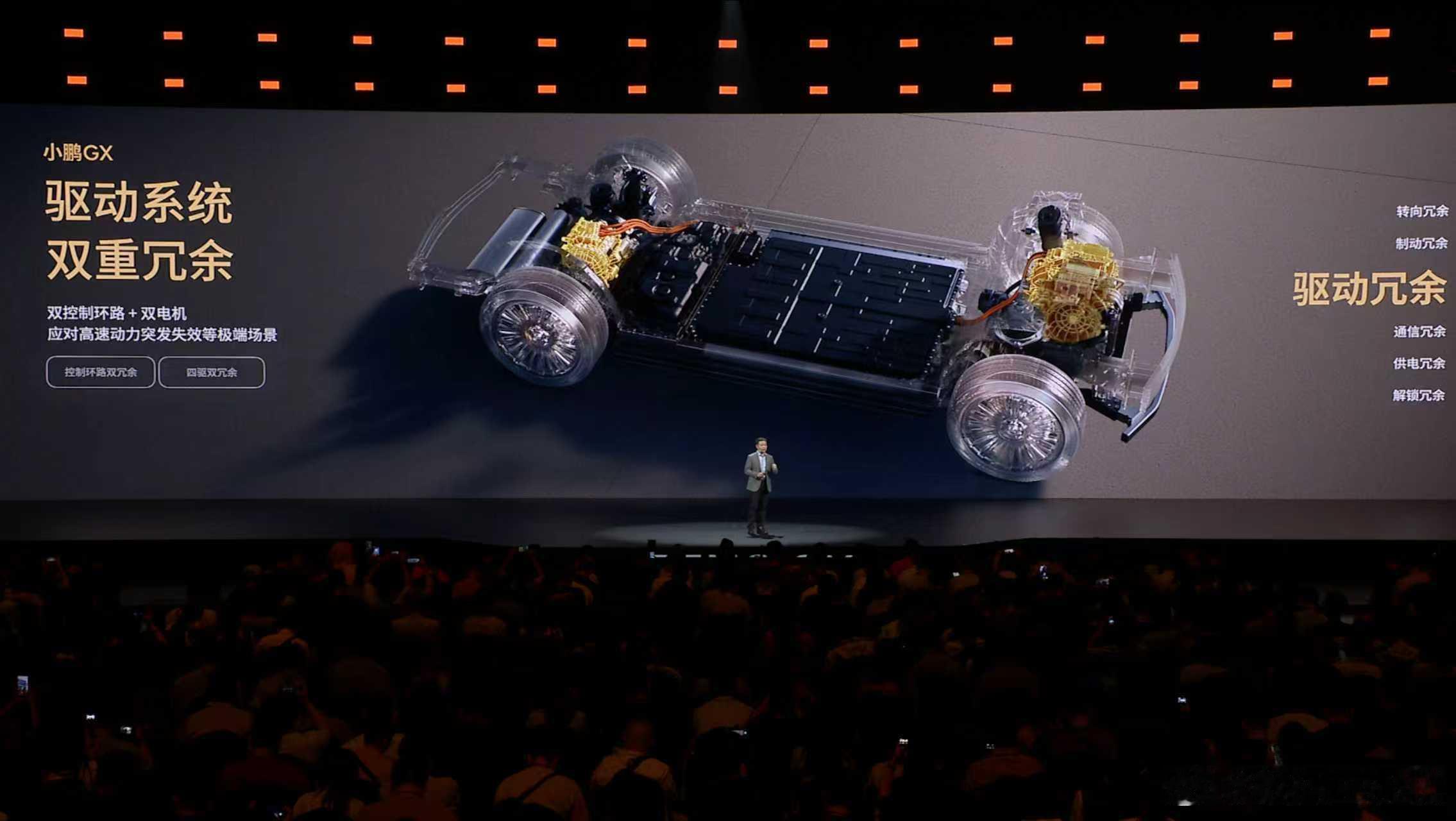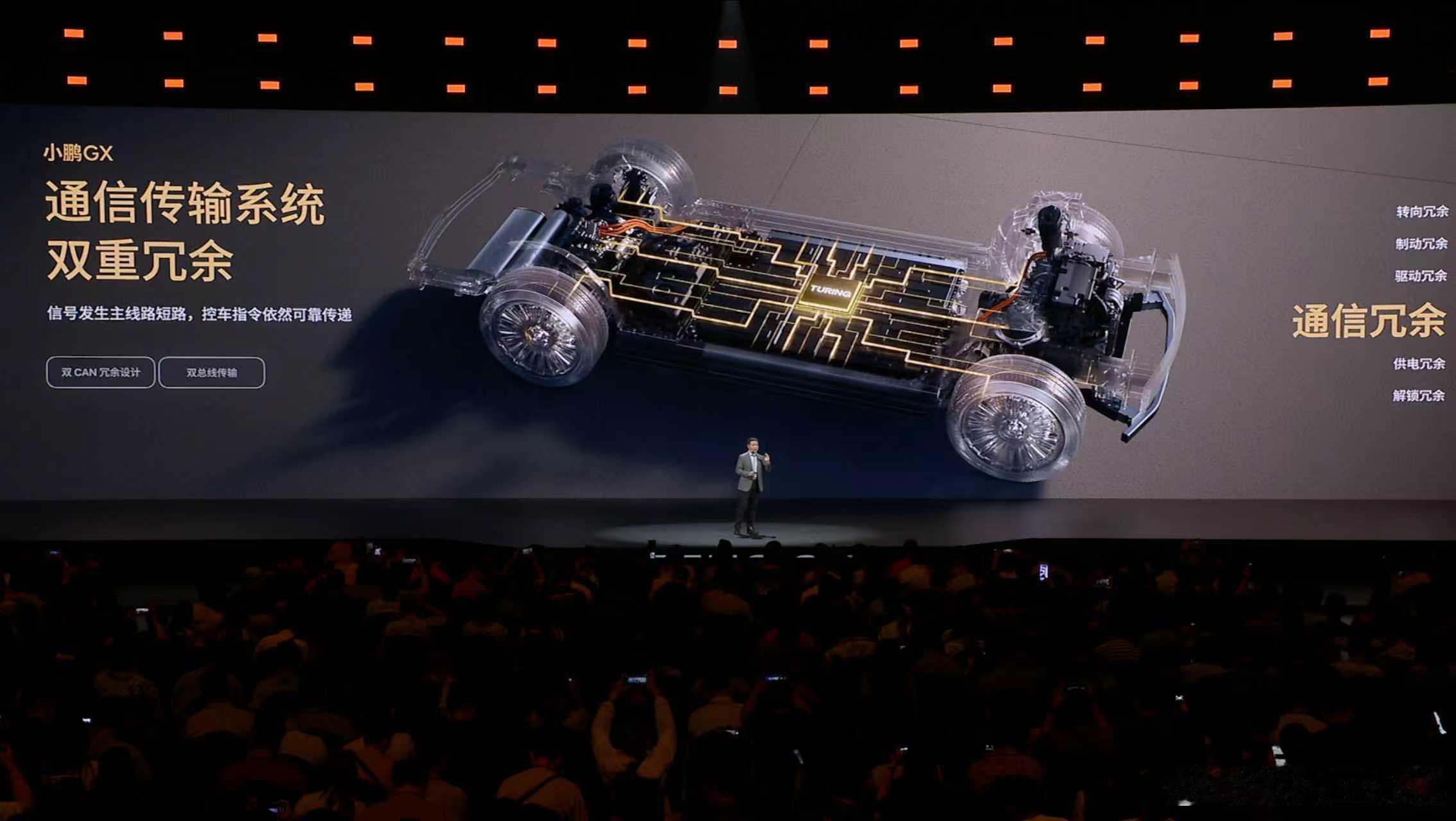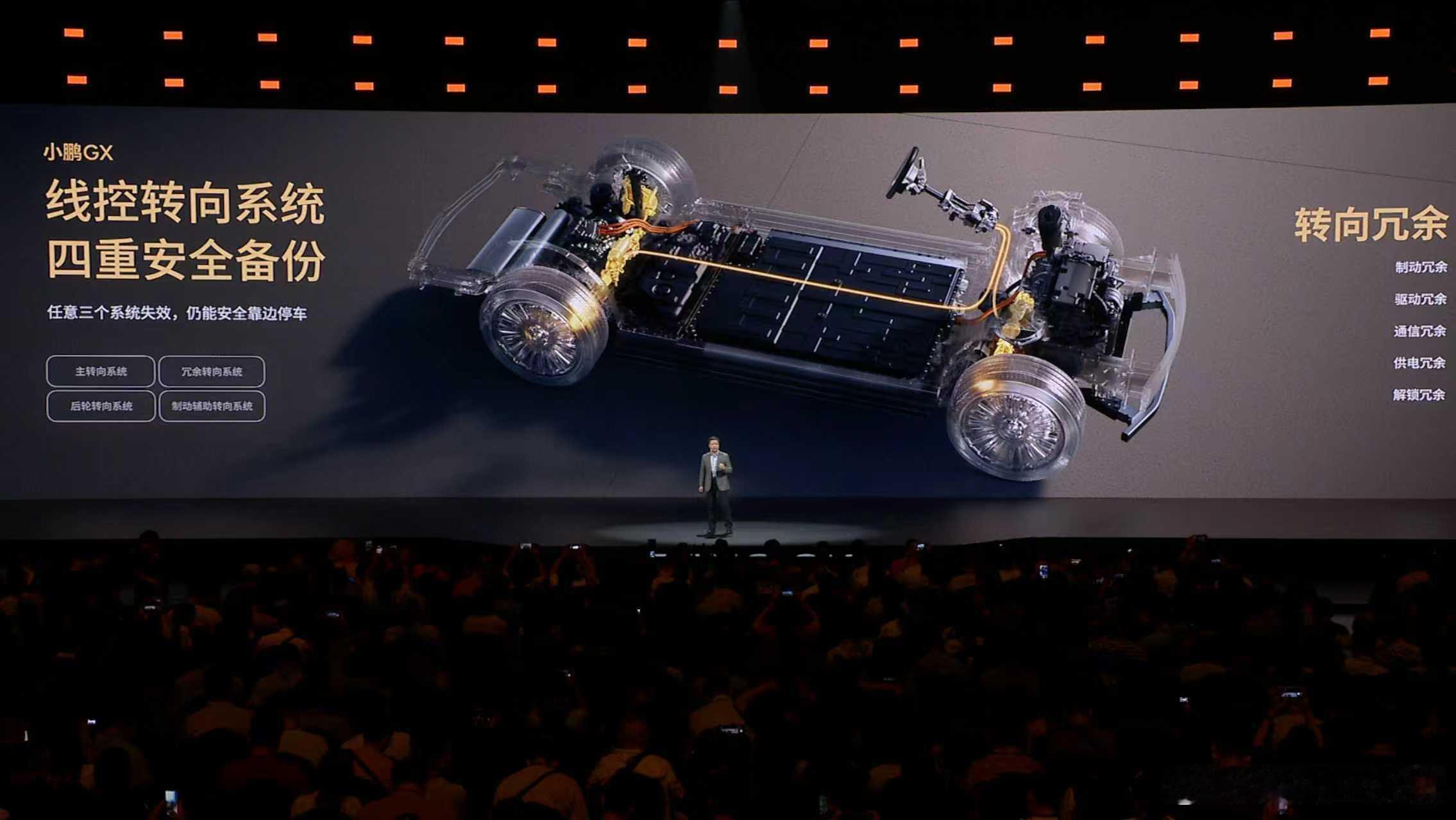 新科技旗舰小鹏GX今晚预售央视称小鹏GX为科技大成之作小鹏GX,面向物理AI时代,行业首创航空级六重全域安全冗余,将安全系数做到民航安全的级别,保证车辆安全驾驶。转向冗余:全球首发转向系统的四重安全备份,稳稳把车靠边停好,给用户最足安全感;制动冗余:线控液压+电子制动双保险,杜绝出现刹车失效和转向偏移;驱动冗余:控制回路+电机,避免突然失速;通信冗余:双 CAN 总线传输,保证转向、刹车等核心指令可靠传递;供电冗余:双重电源备份,极端情况也不宕机;解锁冗余:双重车门解锁 + 四重开启备份,任何情况下车门都能正常开启,方便救援和乘客撤离。