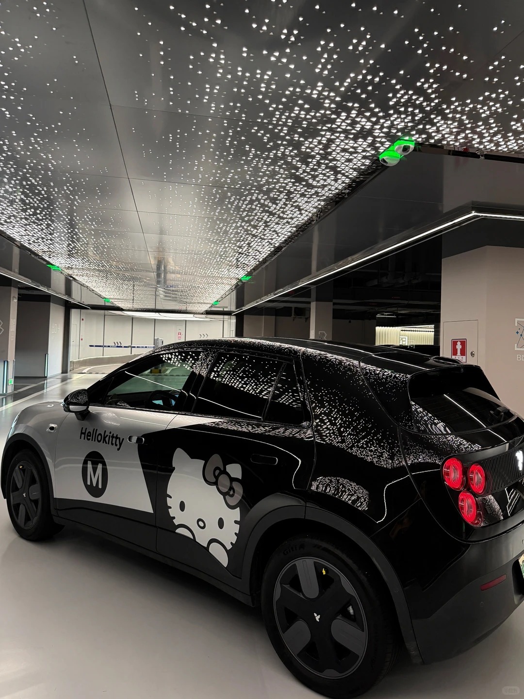 黑灰色+hello kitty,并在星空的照射下,光彩照人!车的新衣