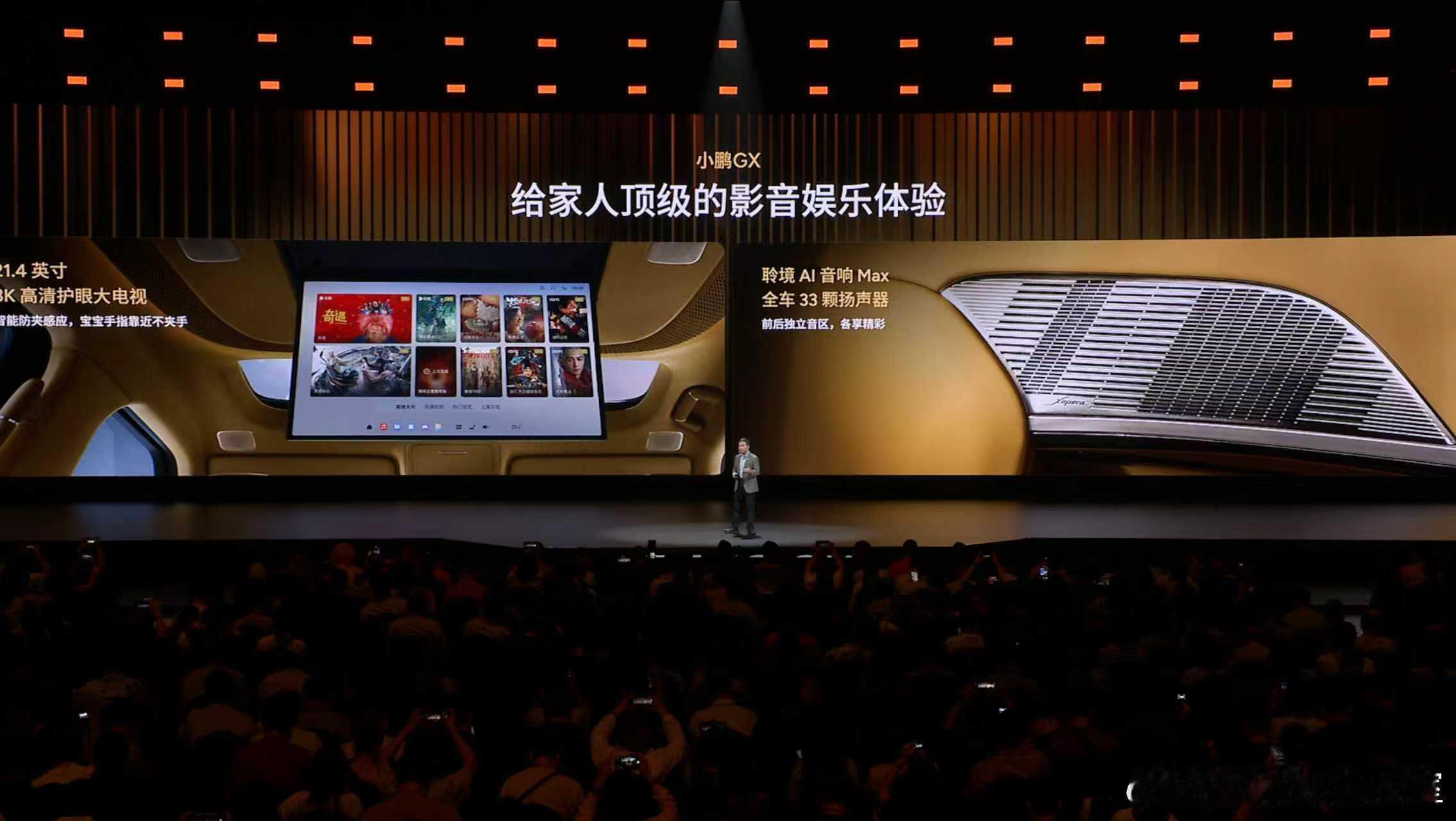 新科技旗舰小鹏GX今晚预售央视称小鹏GX为科技大成之作小鹏GX,拥有全套智能家居的家庭新旗舰,打造全座舱沉浸式舒适体验。- 全球首发AI调光隐私玻璃,带来前所未有的智能隐私体验;- 全球首发AI无菌风冷双开门车载冰箱,告别小、冷、臭,把顶级的健康保鲜冰箱搬进车里;- 21.4英寸3K护眼大屏+全车33颗扬声器聆境音响,顶级影音享受;- 行业首发整车空调柔风系统,风感更柔和,体感更舒适;- “座座皆C位、排排可躺平”,全球唯一三排电动三折叠大六座SUV,满足全场景用车需求。- 两把零重力座椅+一把飞航舒享座椅,公务舱一样的极致享受;- 第三排支持50:50独立收纳:超级大四座,塞下2辆24寸和2 辆20寸自行车;超级大五座,竖放5个高尔夫球包;超级大六座,每人可带专属24寸行李箱。- 同级最大后备箱:673L同级最大容积、1251mm同级最大后备箱开口宽度、同级最低地台,大件物品轻松装,拿取重物不费力。