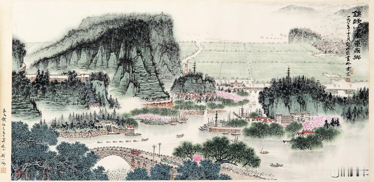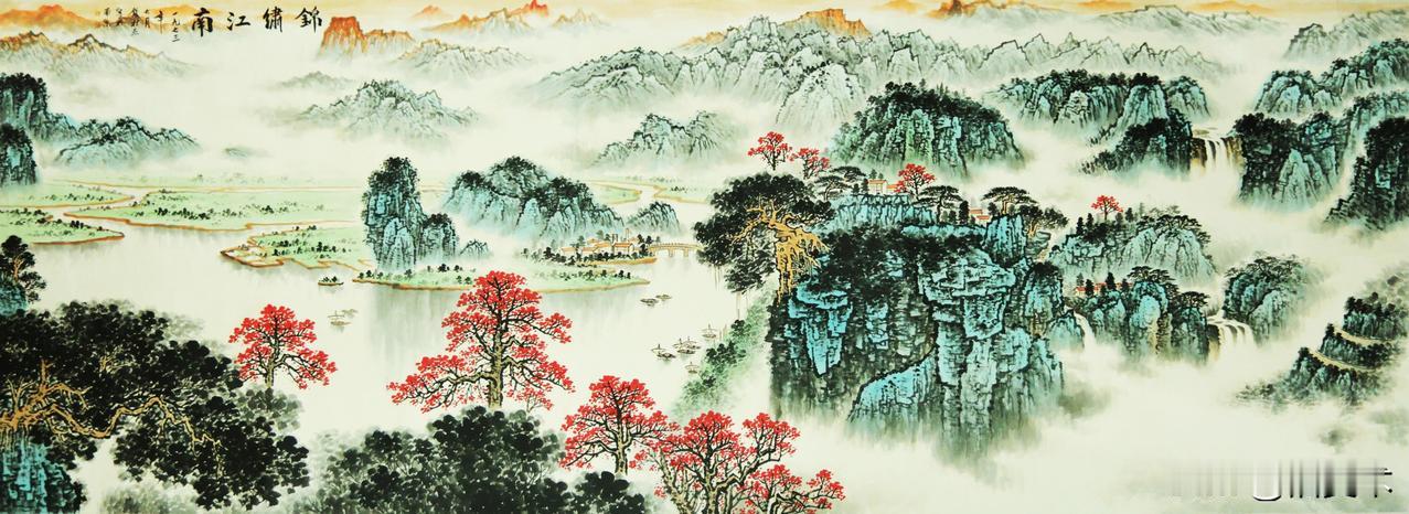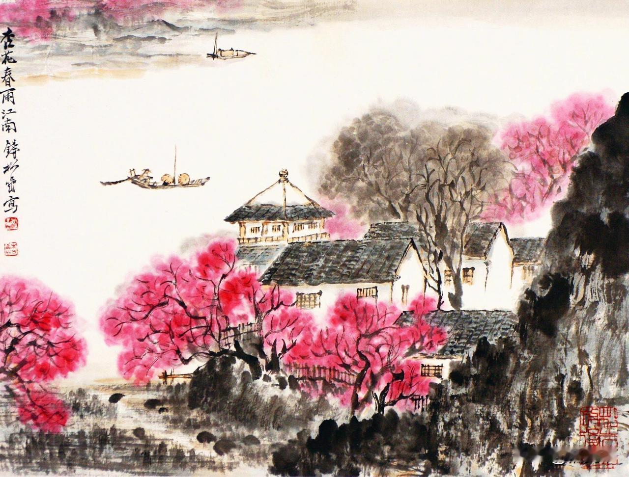 既有古典诗词里杏花春雨的婉转诗意,又饱含江南水乡的人间烟火与时代生机。青绿晕染,草木生发,山河温润,把江南春日的柔和、清润与辽阔,都凝于尺素之间。