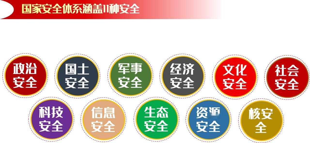 总体国家安全观,守护你我每一天 国家安全不仅仅是边境和军队, 它涵盖政治、国土、军事、经济、文化、社会、科技、信息、生态、资源、核安全。 每一种安全,都与我们息息相关。 了解国家安全,就是保护我们自己。