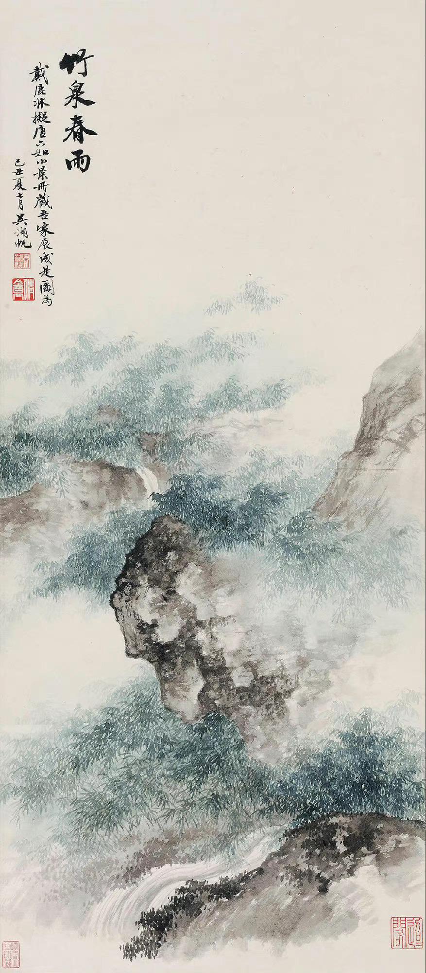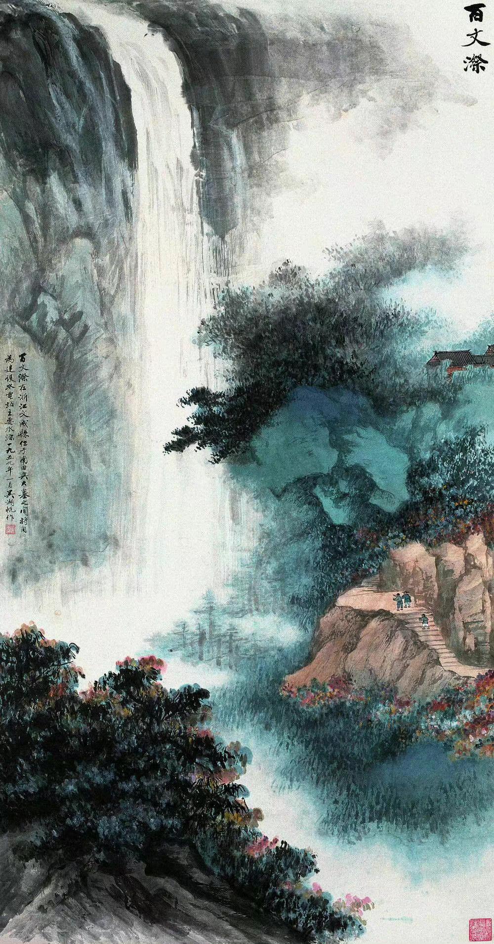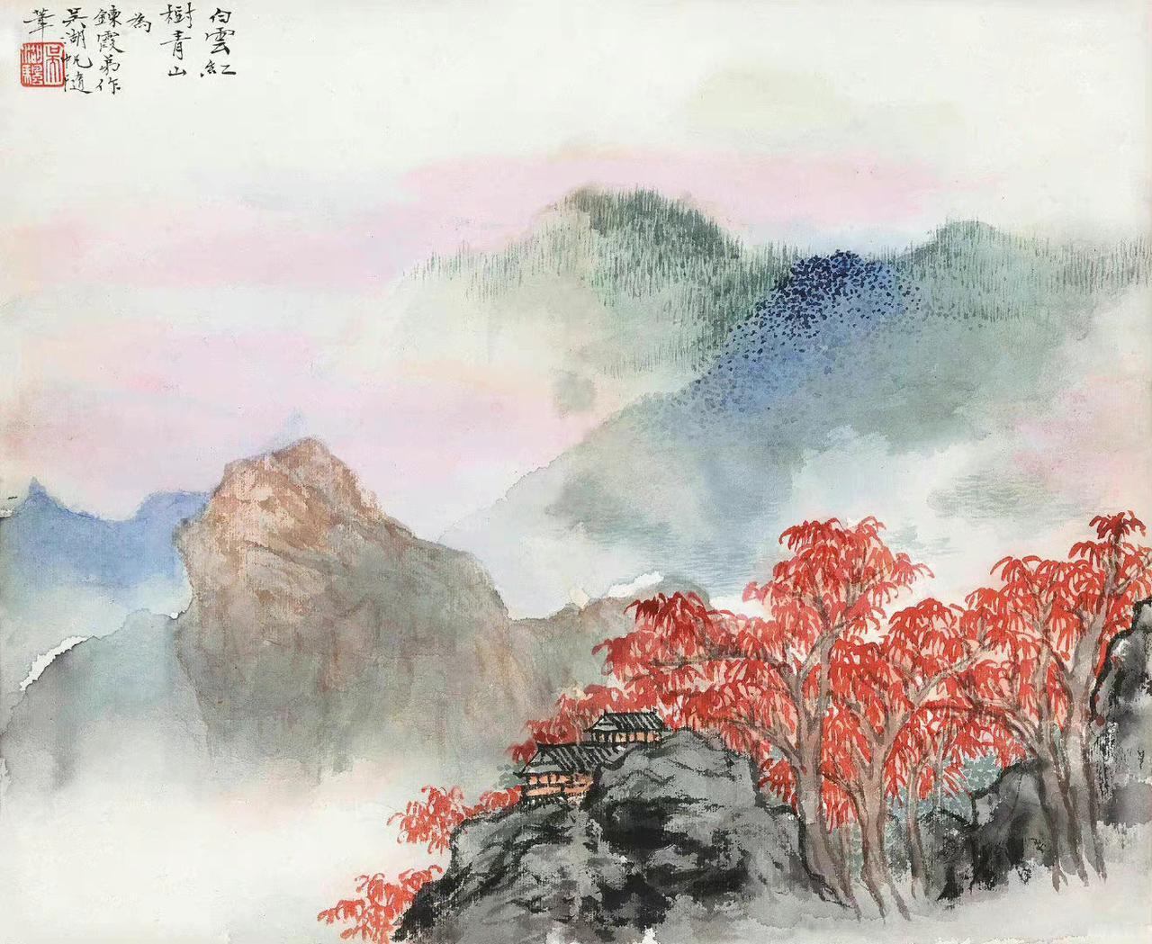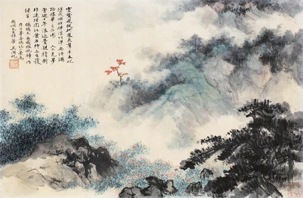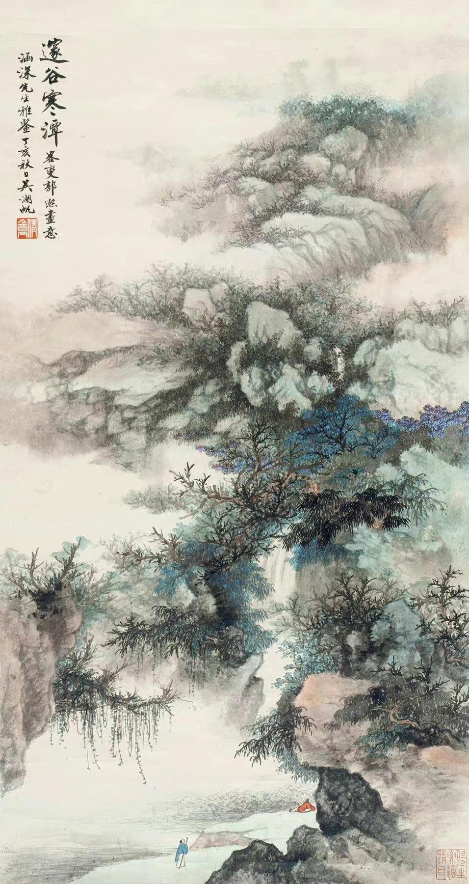 笔墨藏古韵,色彩见匠心。在近现代山水画坛,吴湖帆以独树一帜的设色技法,让传统青绿山水重焕光华。他笔下的山水,没有浓艳堆砌的匠气,唯有温润清雅的诗意,石青、石绿交织着墨色与赭石,层层晕染间,勾勒出江南山水的灵秀,也藏着传统文人画的华贵风骨,每一抹色彩,都如官窑青瓷般温润通透,尽显独属于他的山水美学。