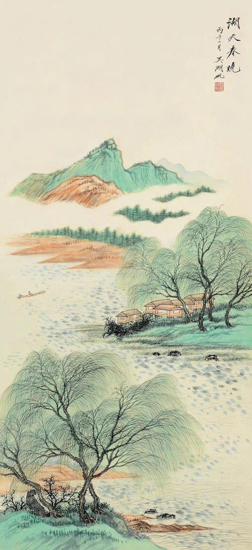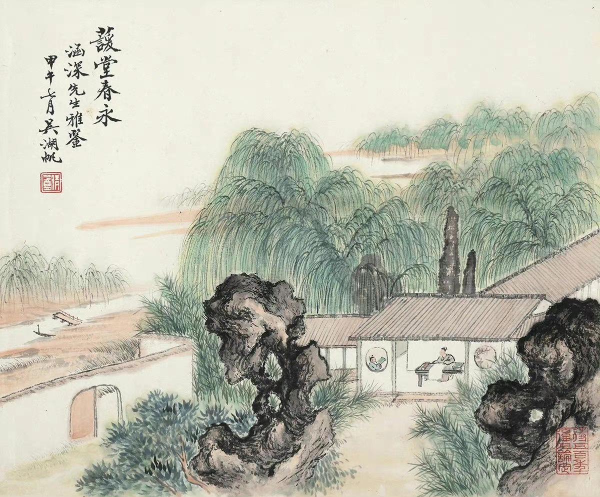 二人曾同画《柳堤春晓》: