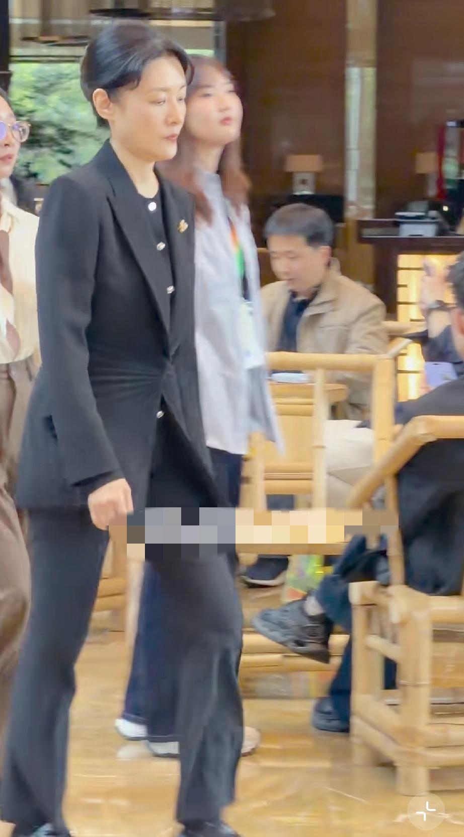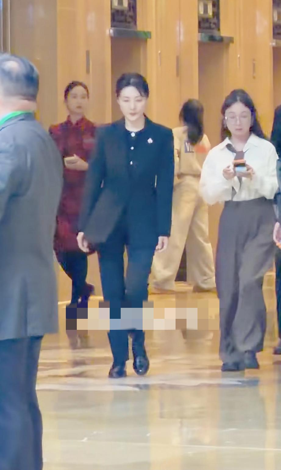 但这次参加网络视听大会,她穿了西装以后表情就严肃了很多,不敢随便笑了,尤其在走路的时候腰部发力,好像是老板似的。