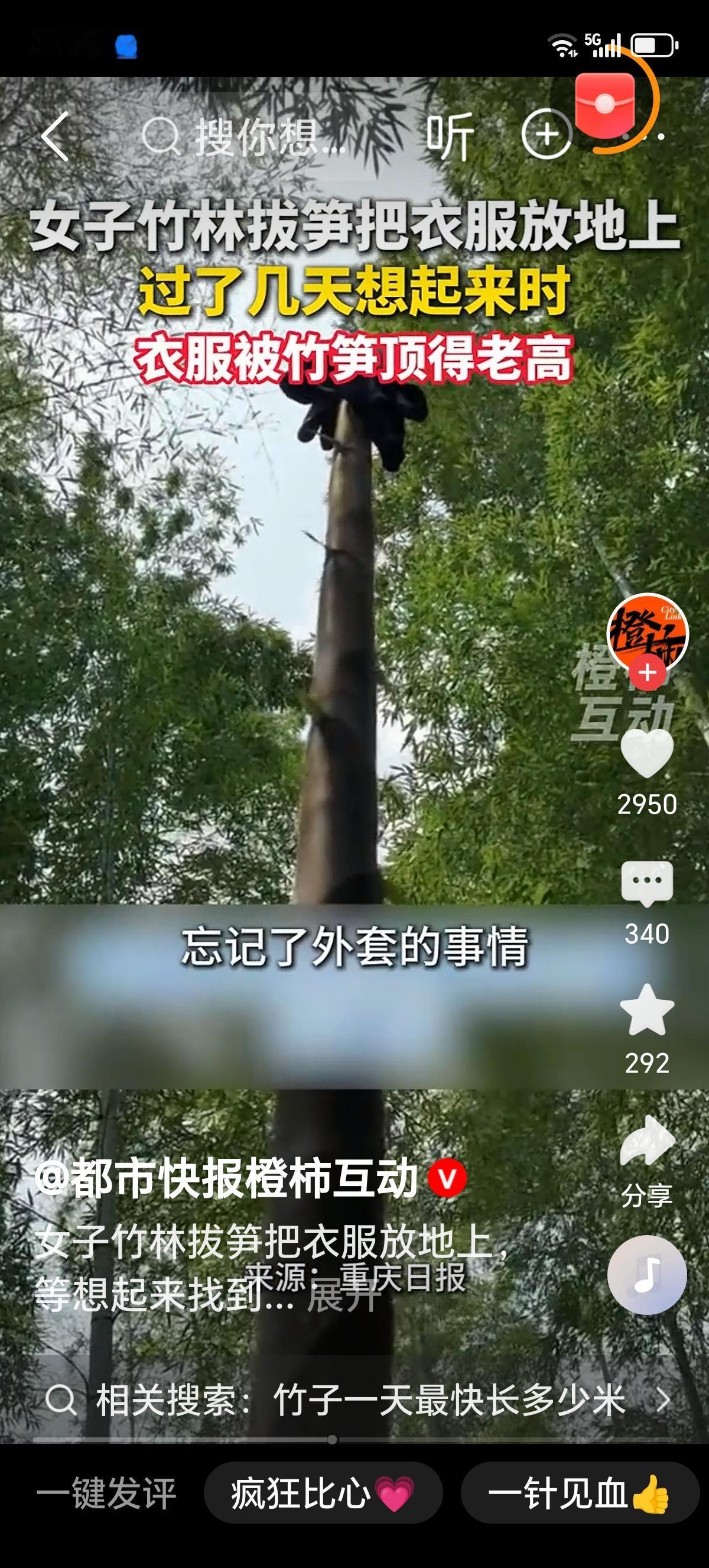说不定等女子再回到放外套的地方,会发现一些有趣的事儿,比如有小动物把外套当成了临时小窝,或者外套上沾满了花草的香气。这看似“糟糕”的遗忘,说不定会变成一段难忘的回忆。你有没有过类似这样“丢三落四”却充满乐趣的经历呢?快来评论区分享分享!户外采摘竹笋 山野挖笋
