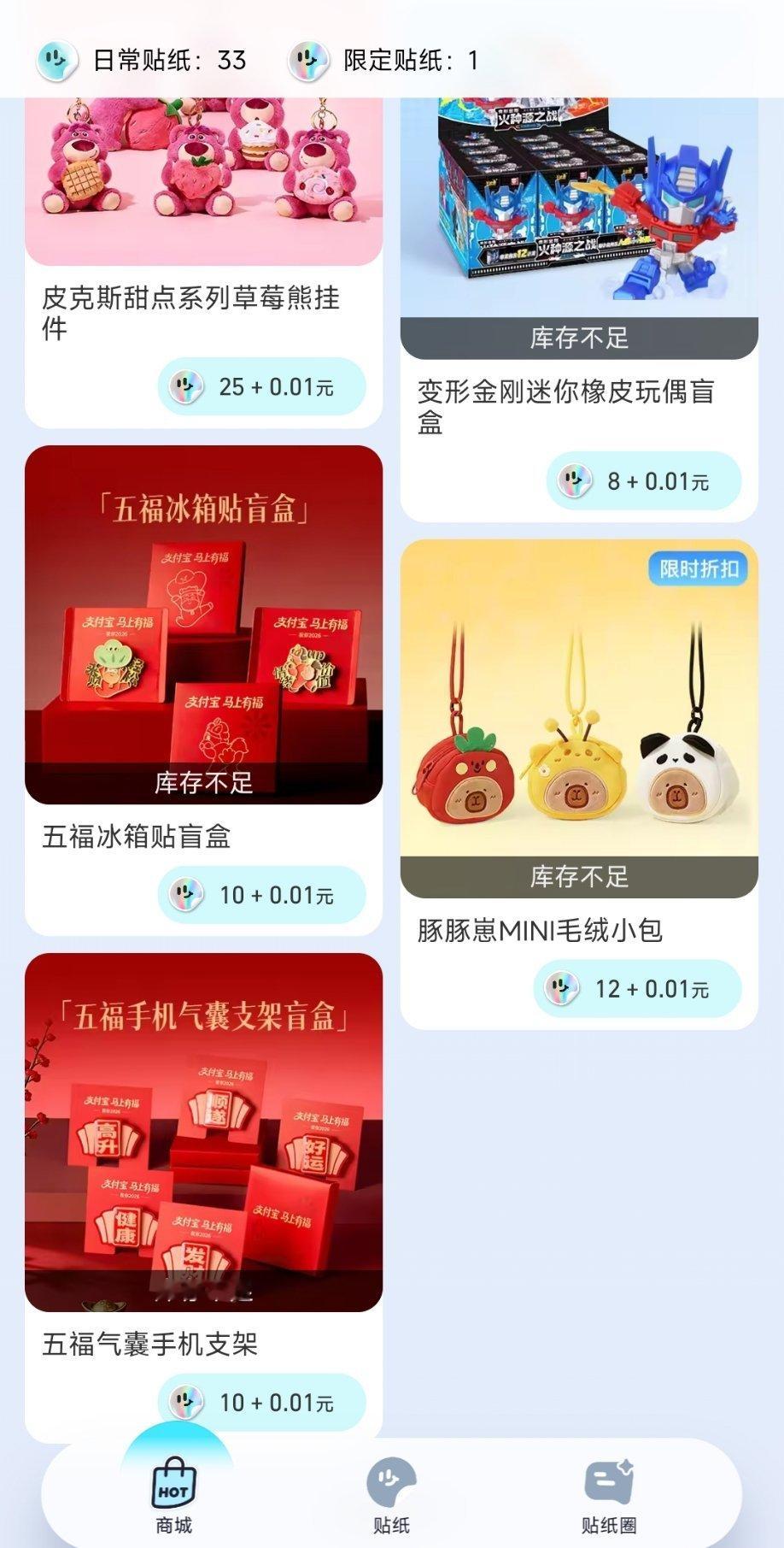 支付宝贴纸兑换的变形金刚迷你橡皮玩偶盲盒!