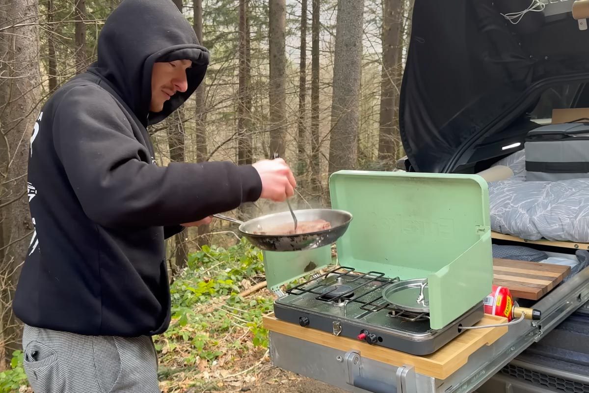 两年多来,这个美国人一直生活在车里,他在后备厢内装了一张可折叠的床,座椅前移后可以展开,甚至可以容纳两个人入睡,他还在车内安装了冰箱、冷冻柜、小型烹饪区域,以及一套过滤水系统,电力由车载电池提供,而电池则通过车顶安装的太阳能板进行充电。