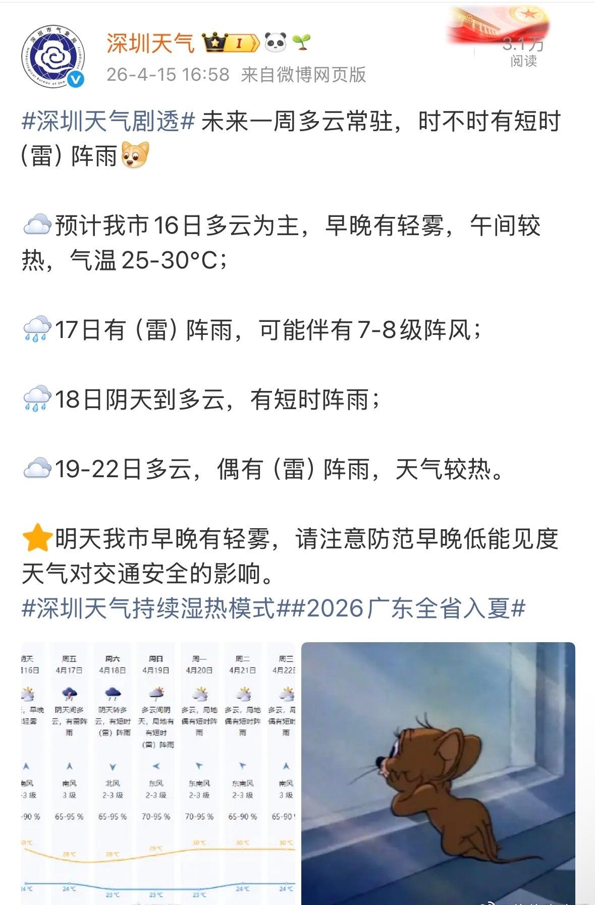 4月中旬,广东已经全省入夏了,深圳从周末开始又有雷雨,都能想象到到时候闷热潮湿、