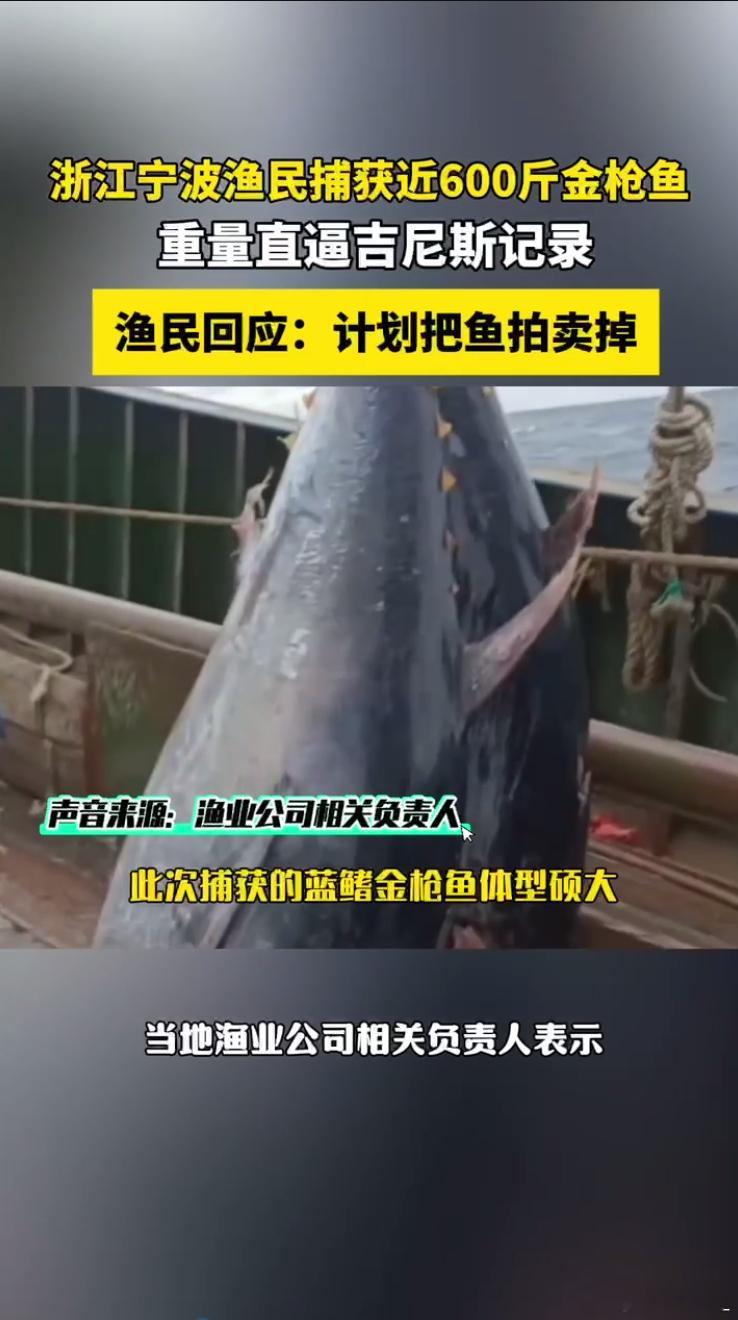 渔民回应又捕获近600斤重金枪鱼太震撼了!浙江奉化渔民捞到近600斤蓝鳍金枪鱼,重量直逼破吉尼斯纪录,船老大都说这么大的好几年都碰不到,今年直接遇上两次!渔民捕获近600斤金枪鱼上架拍卖