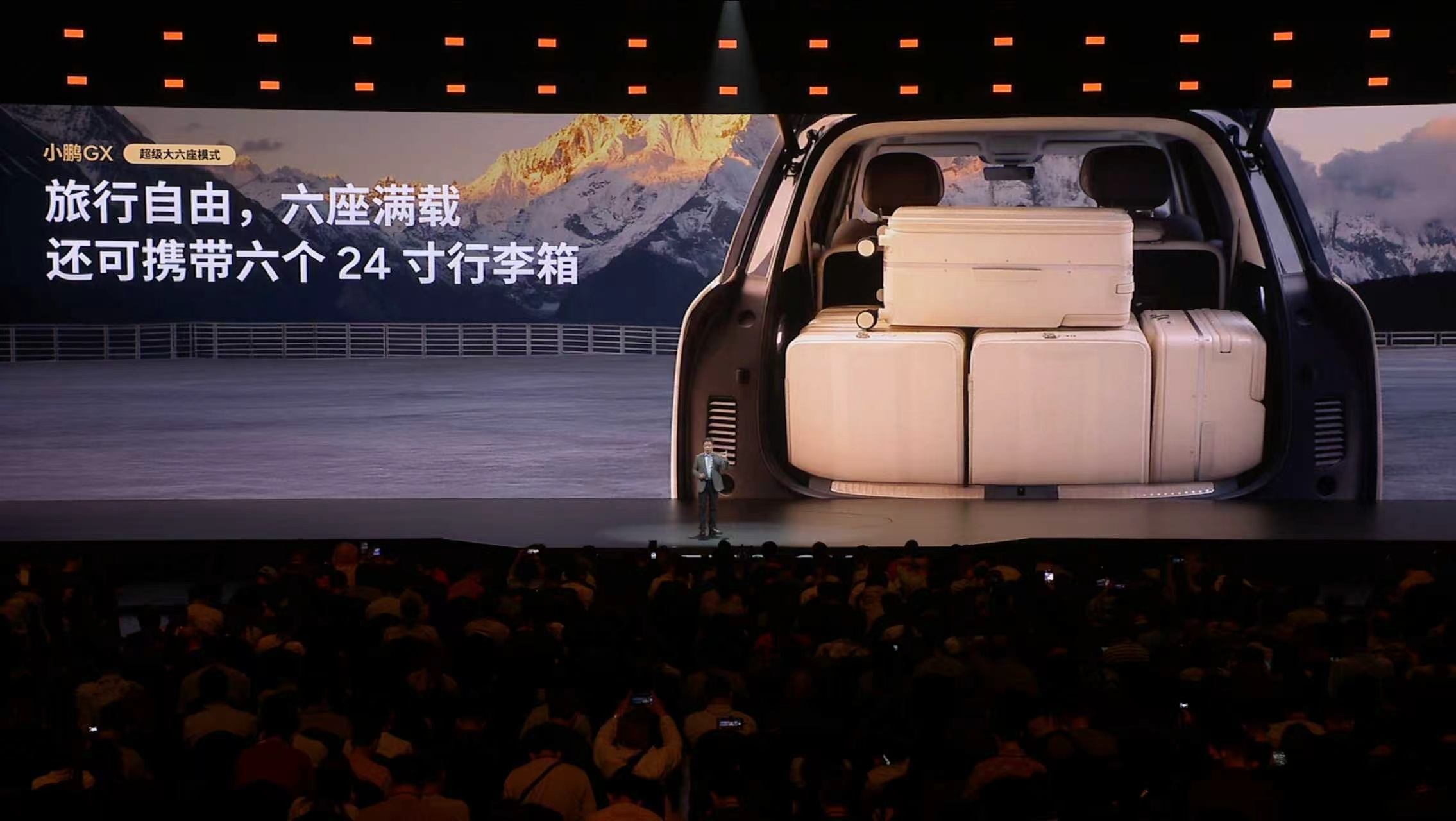 新科技旗舰小鹏GX今晚预售央视称小鹏GX为科技大成之作 小鹏GX,拥有全套智能家居的家庭新旗舰,打造全座舱沉浸式舒适体验。- 全球首发AI调光隐私玻璃,带来前所未有的智能隐私体验;- 全球首发AI无菌风冷双开门车载冰箱,告别小、冷、臭,把顶级的健康保鲜冰箱搬进车里;- 21.4英寸3K护眼大屏+全车33颗扬声器聆境音响,顶级影音享受;- 行业首发整车空调柔风系统,风感更柔和,体感更舒适;- “座座皆C位、排排可躺平”,全球唯一三排电动三折叠大六座SUV,满足全场景用车需求。- 两把零重力座椅+一把飞航舒享座椅,公务舱一样的极致享受;- 第三排支持50:50独立收纳:超级大四座,塞下2辆24寸和2 辆20寸自行车;超级大五座,竖放5个高尔夫球包;超级大六座,每人可带专属24寸行李箱。- 同级最大后备箱:673L同级最大容积、1251mm同级最大后备箱开口宽度、同级最低地台,大件物品轻松装,拿取重物不费力。