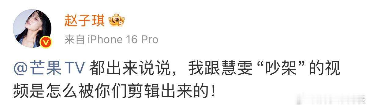 赵子琪是逼我爆所有的料吗赵子琪今天一早开撕芒果:“都出来说说,我跟慧雯吵架的
