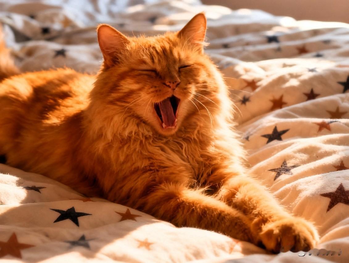 能晒一下你家猫咪慵懒的样子吗这就是我家小老虎慵懒的样子,张着大嘴打着哈气,睡意朦