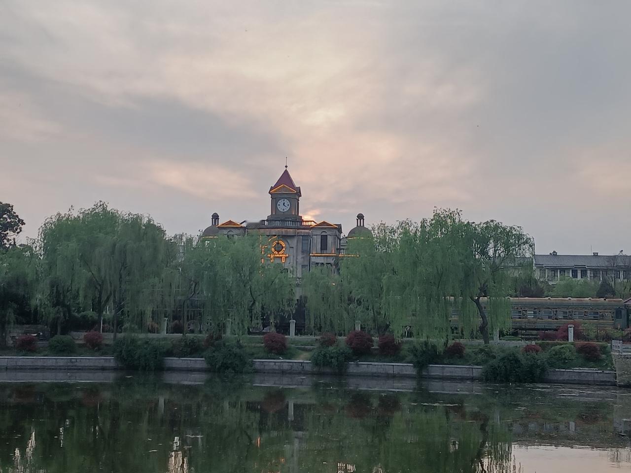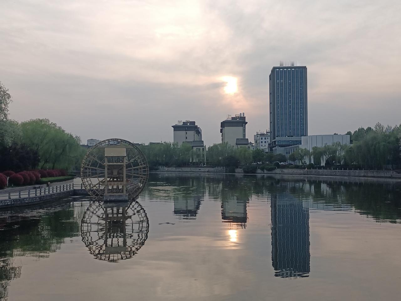 4月15日天气预报“阴”,气温融合。早晚大运河畔的景色