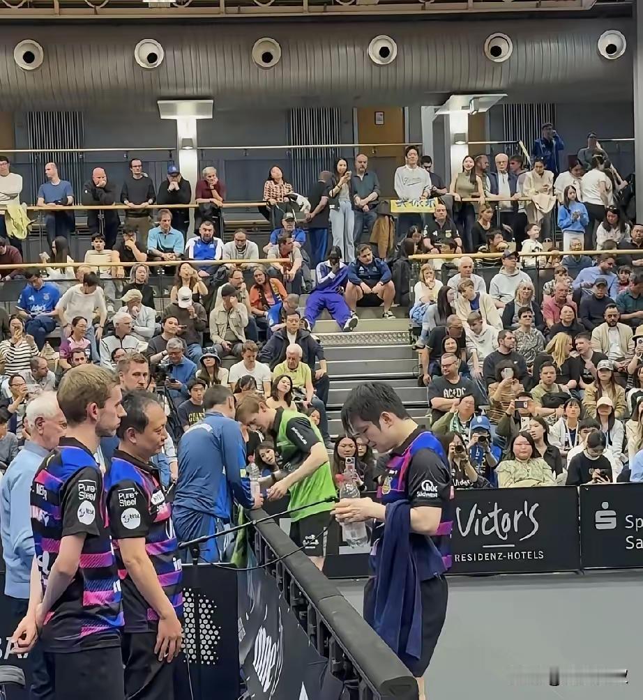 这次主场告别战的现场,当地观众比中国观众多,这是好现象当地人喜欢看乒乓球比赛了,这是樊振东在德甲打球的意义。