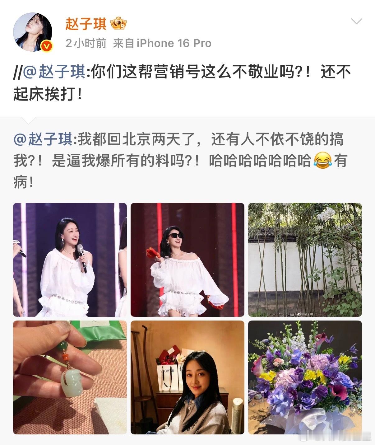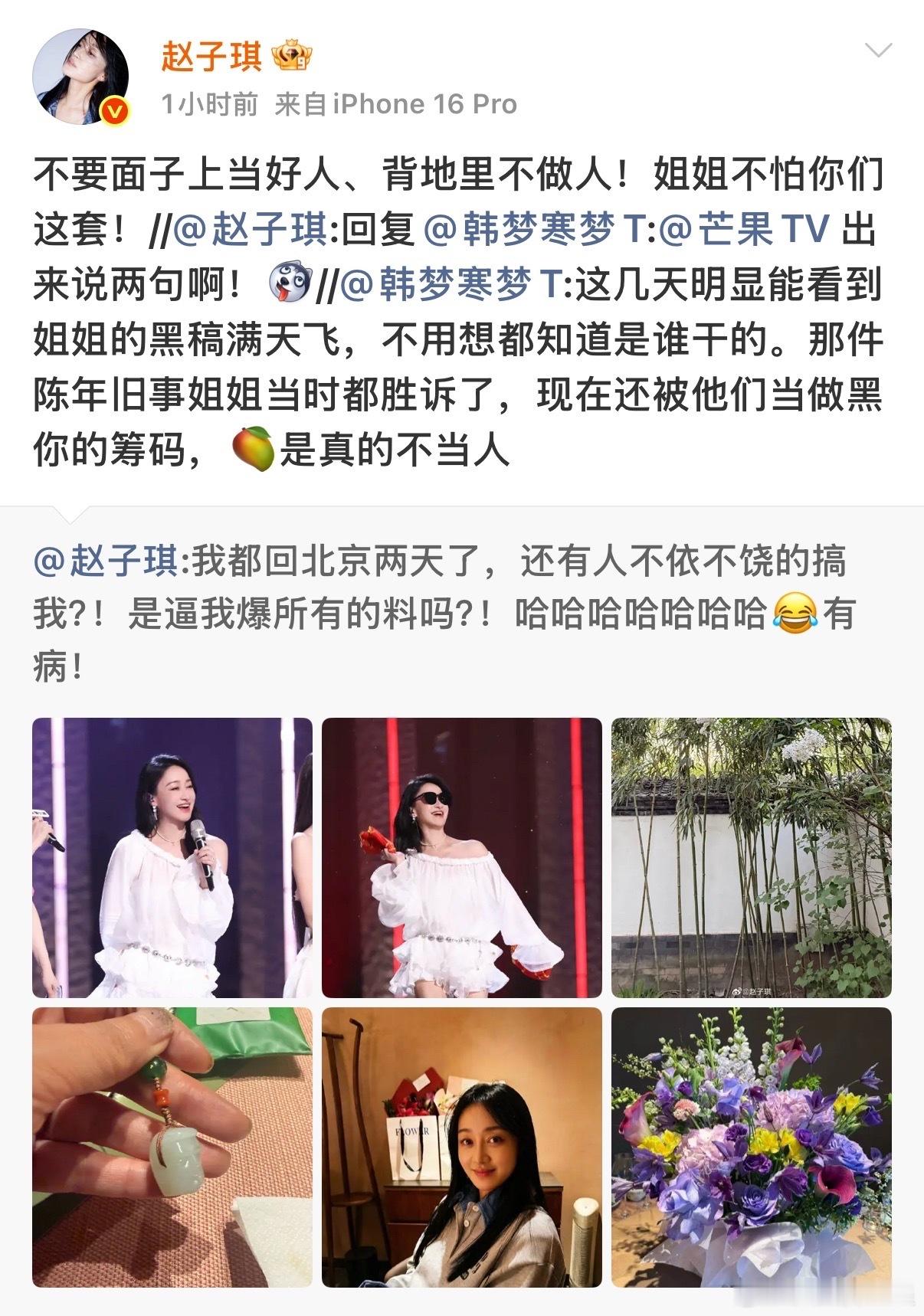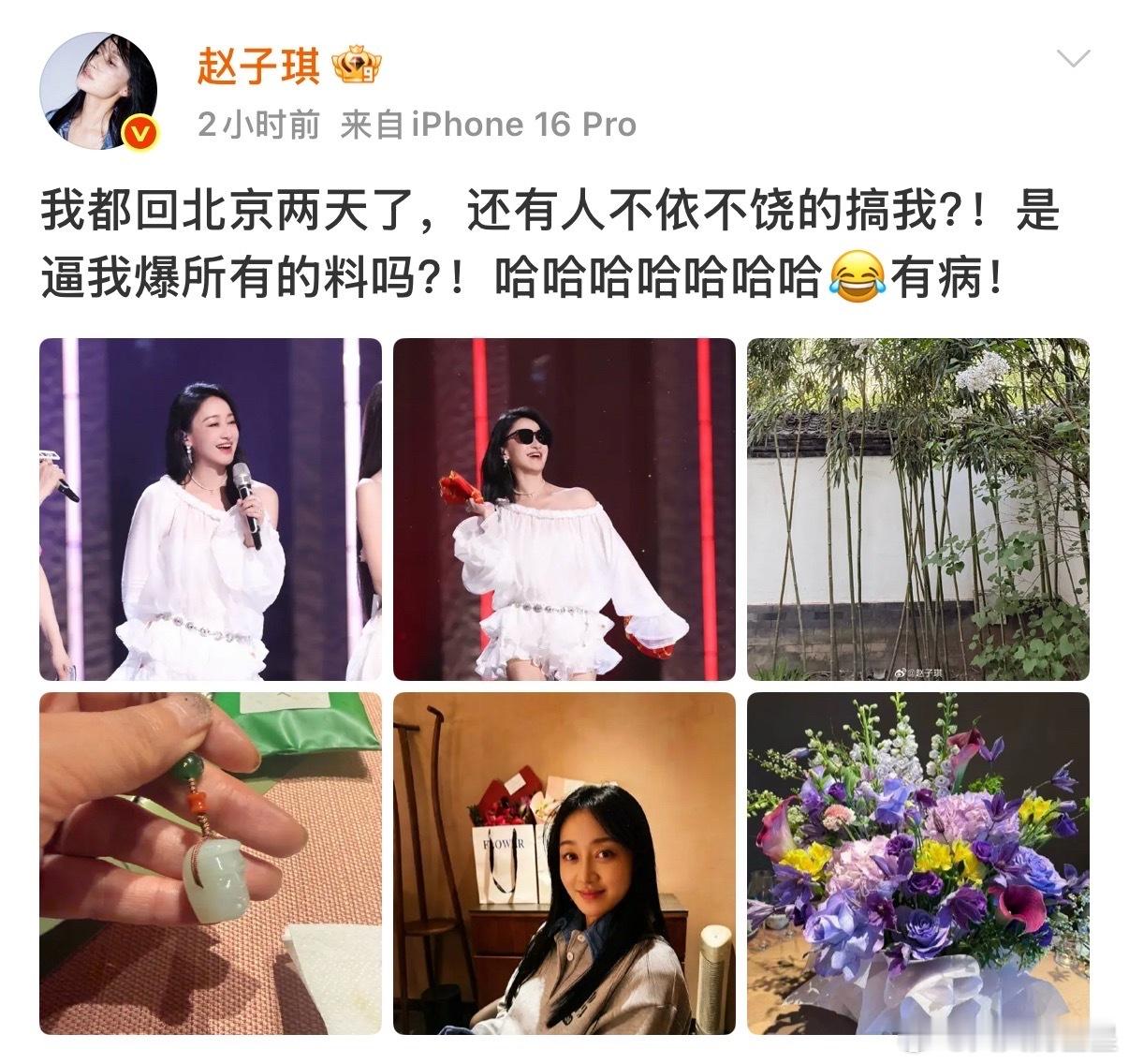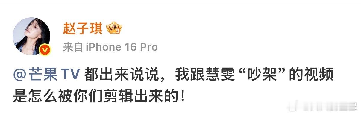 赵子琪凌晨连发六条微博喊话说要爆出所有的料赵子琪连发六条微博喊话赵子琪说与张慧雯吵架是被剪辑的