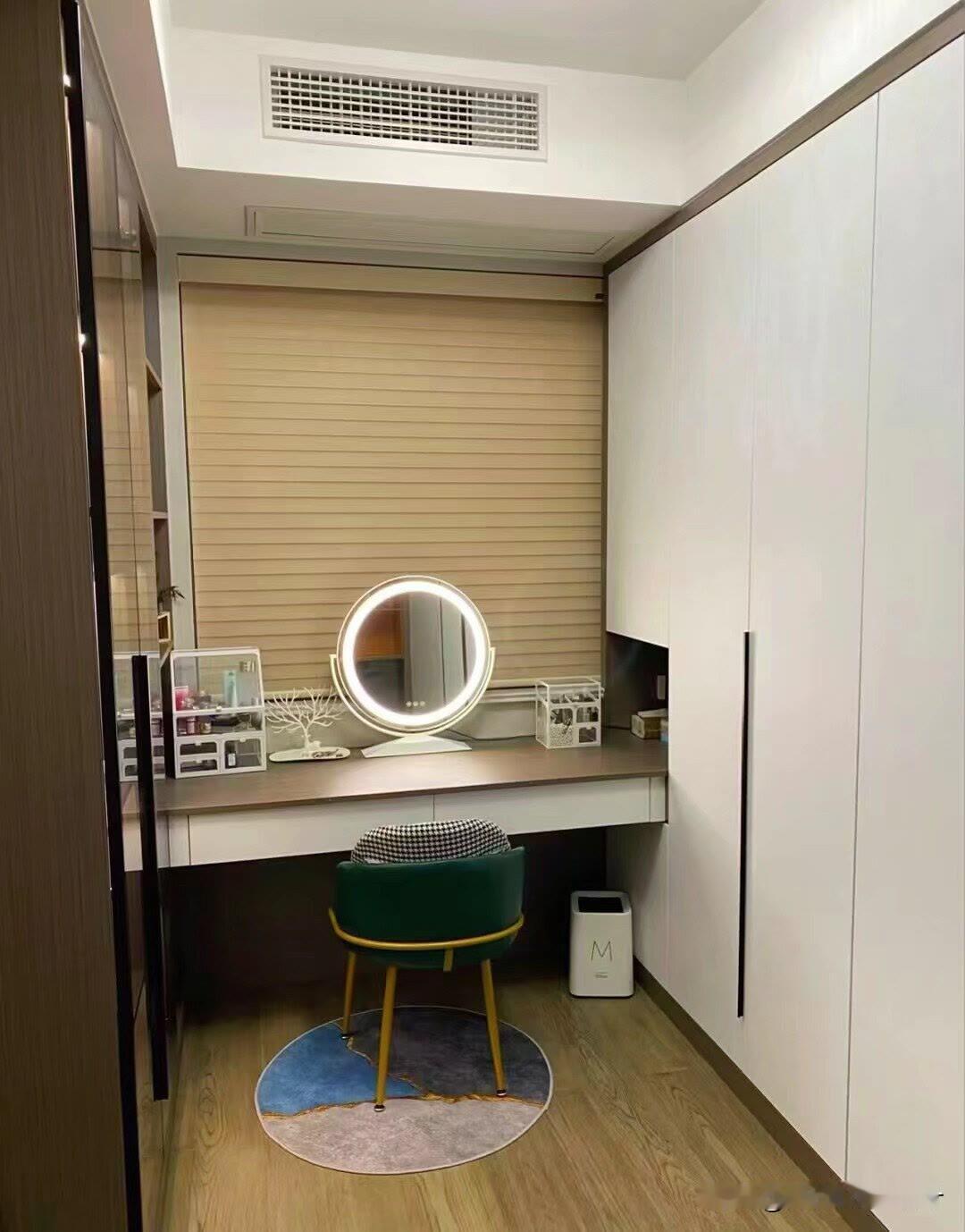 - 短边做薄侧柜15–20cm:放包包、帽子、护肤品、首饰盒