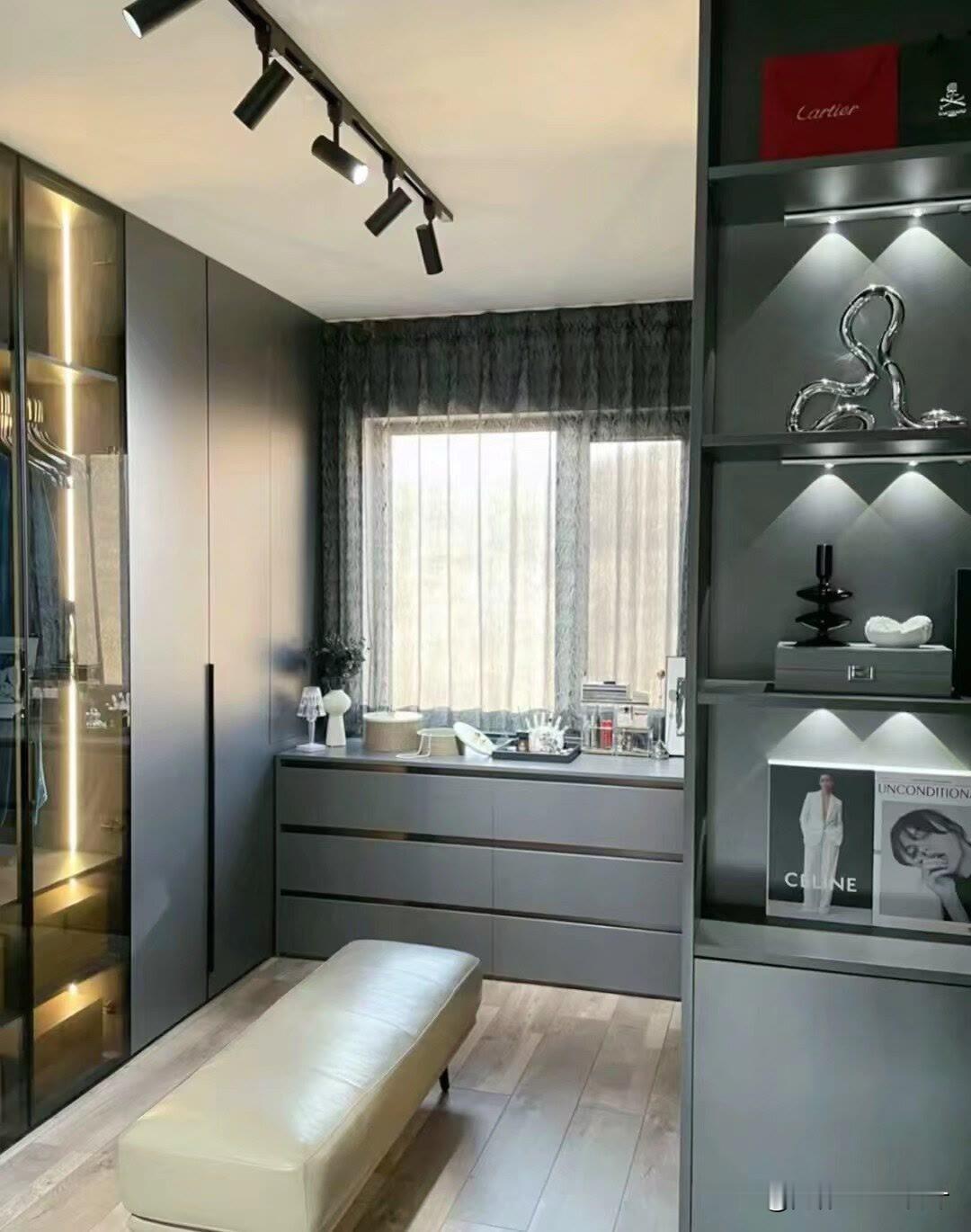 2. 局部玻璃窄格:放潮鞋、包包、香水,轻奢不压抑