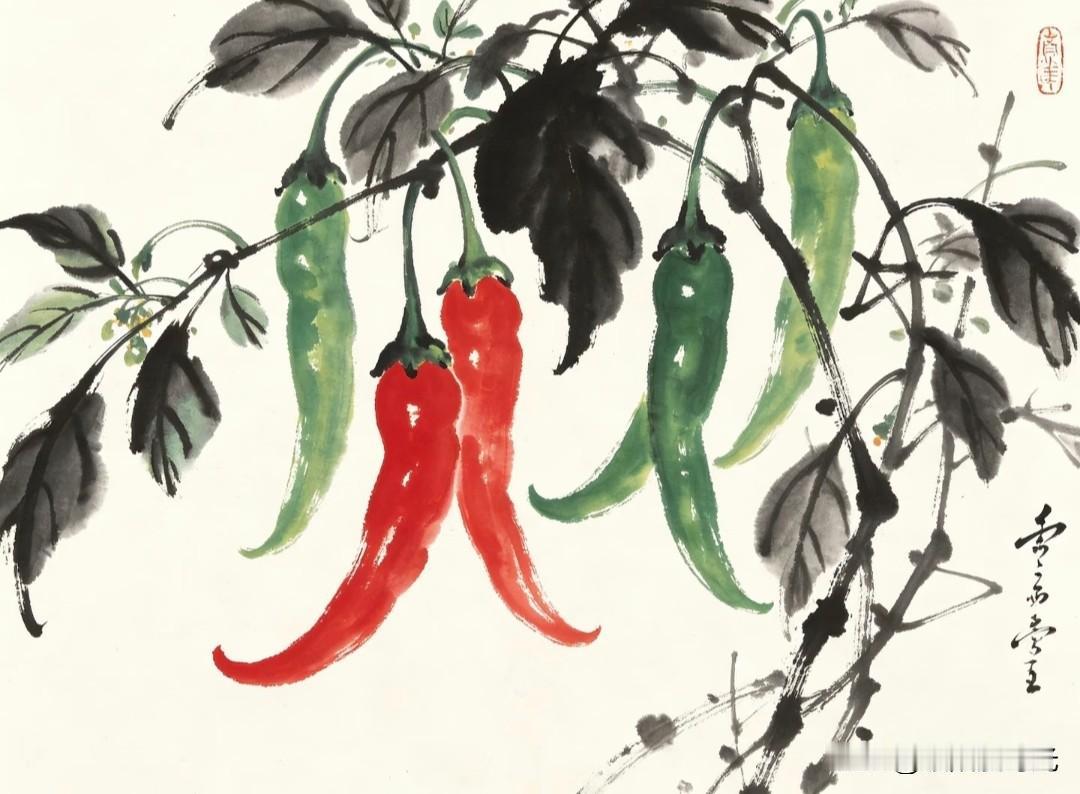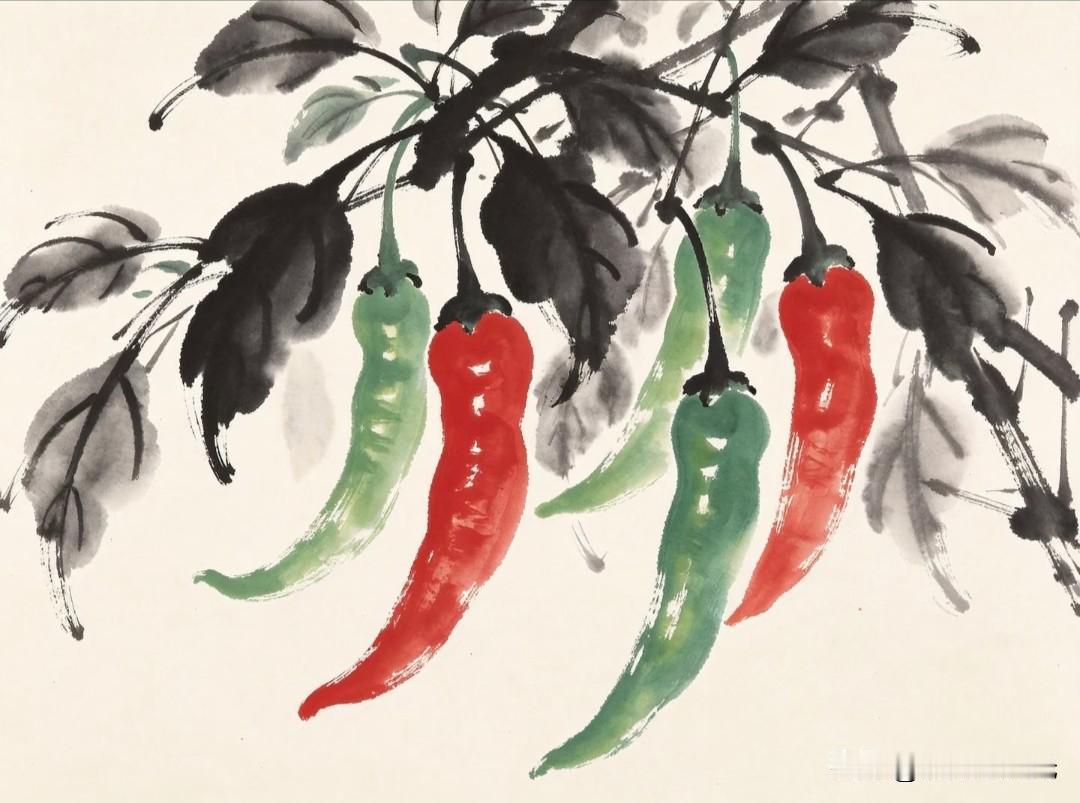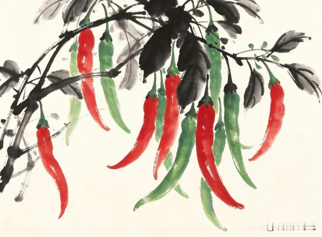 红绿辣椒挂枝头,人间烟火味悠长。🌶🌶🌶 小画拾光治愈系插画分享 水墨辣椒