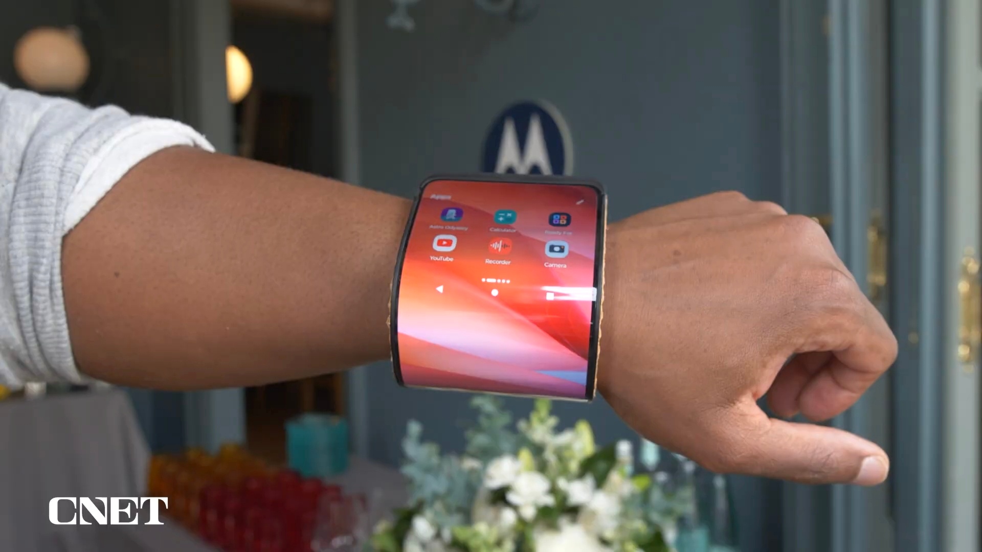 Motorola 这个真自由曲面屏手机,跟腕表一样任意弯曲,可以戴在胳膊上,这玩