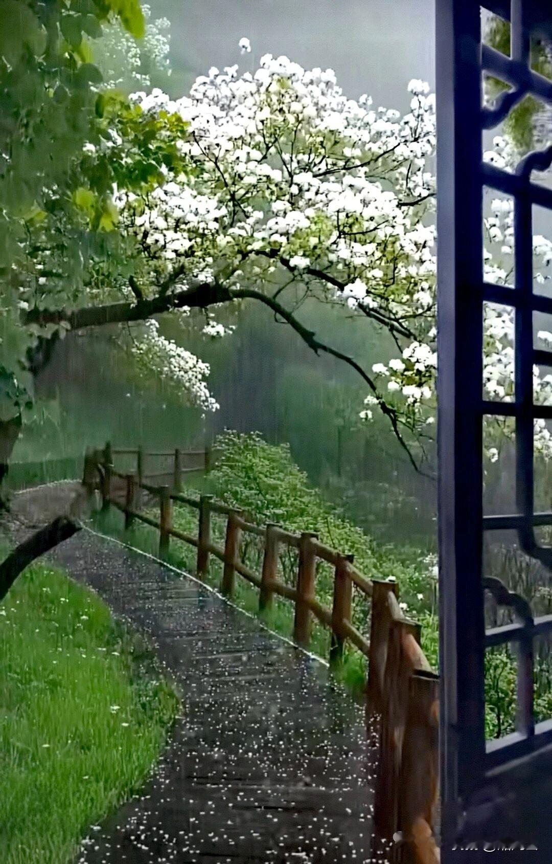 苔侵石径,细雨风吟洇落叶; 水漾荷塘,轻衣步软对眠花。平仄诗意