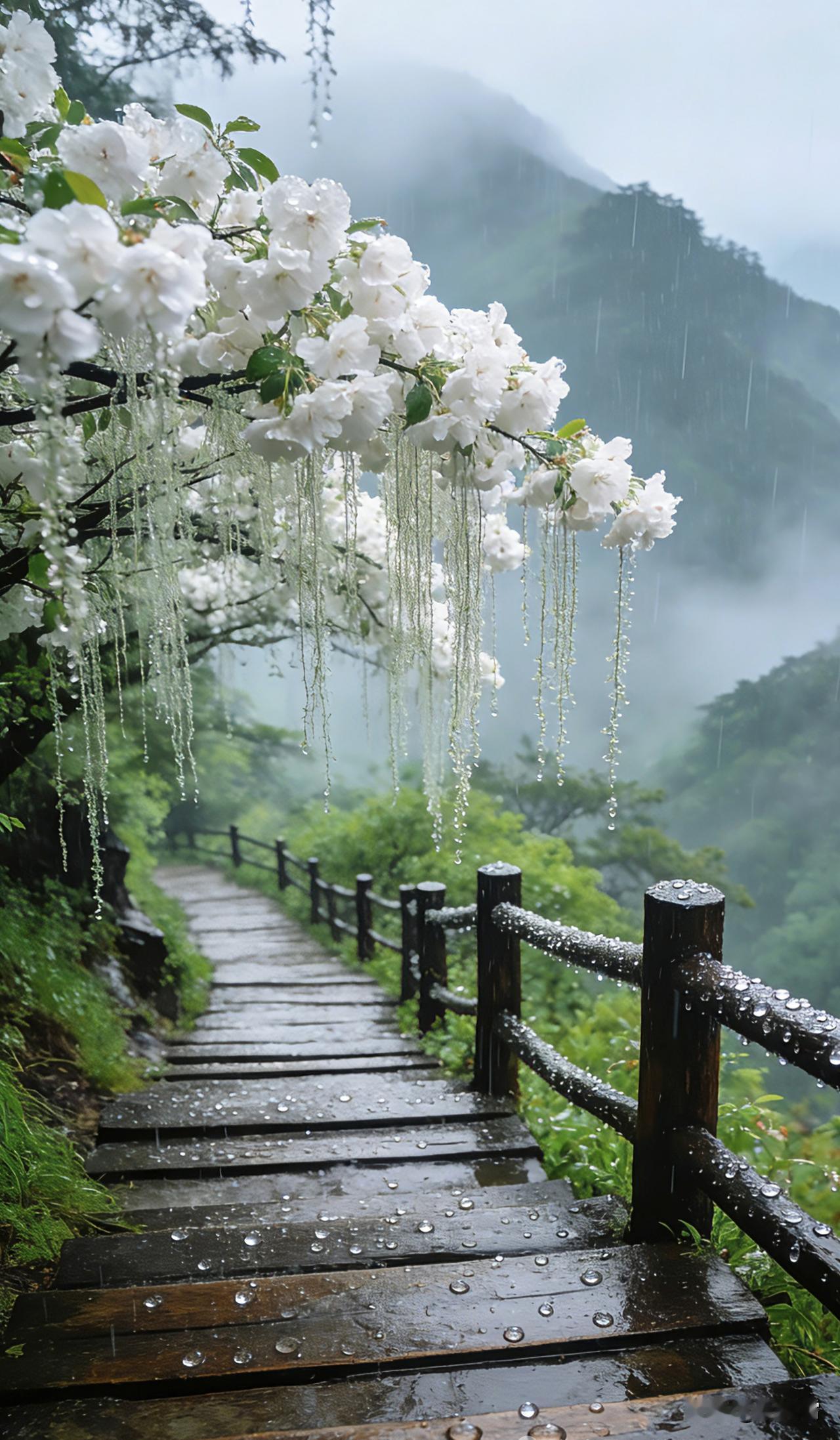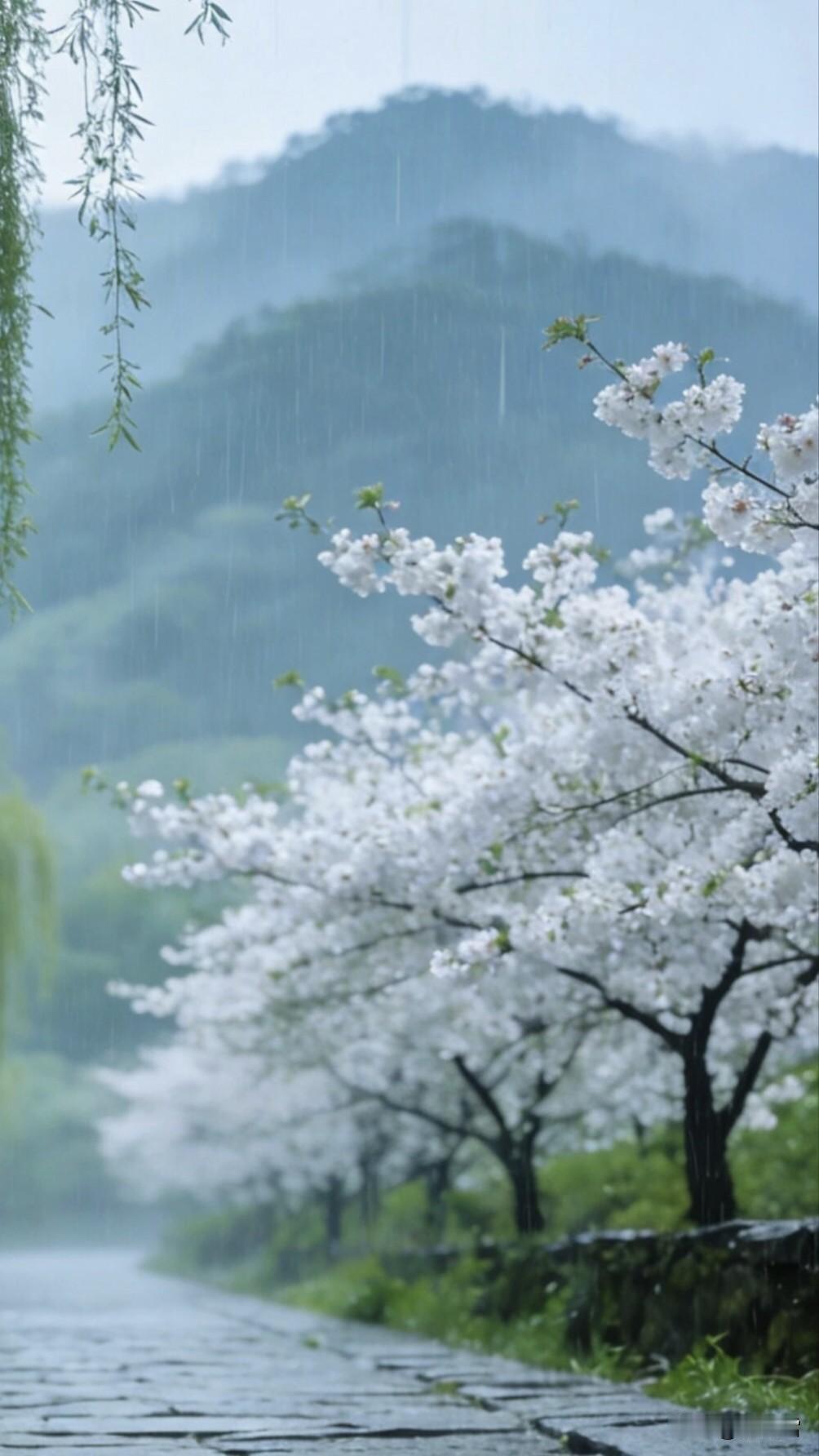 远看春山黛 又见梨花落 雾散见春山
