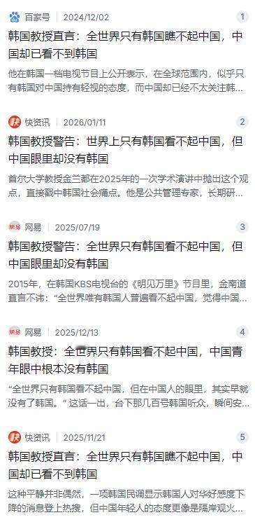 韩国教授警告:全世界只有韩国看不起中国,但中国眼里却没有韩国。近年来,随着网络的多元化发展,韩国上下从政客到民众,对中国的恨意越来越强烈地表现了出来。前一段时间,韩国还爆发了大规模的反华游行,连李在明都不得不重视起来,要求民众们不许再展开此类游行!